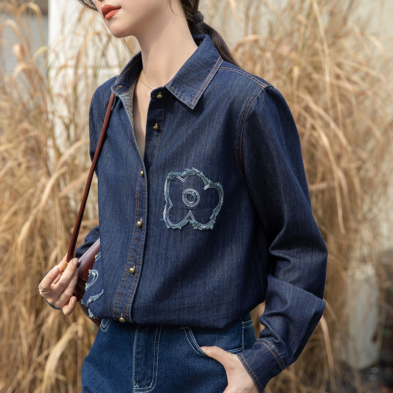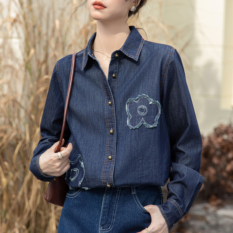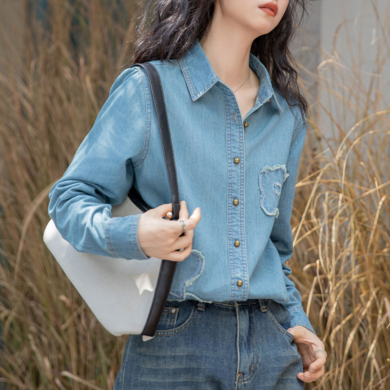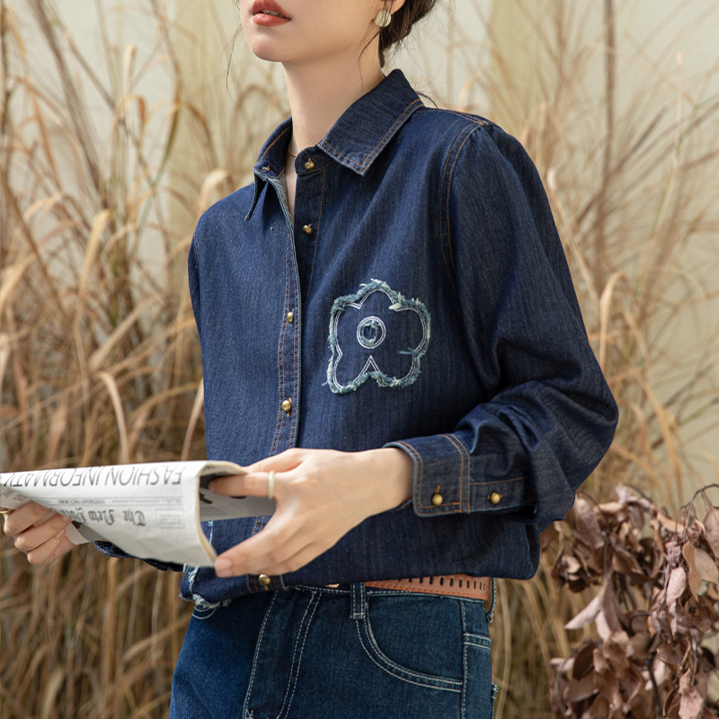 Home > 长袖雪纺衫、衬衫、上衣 > FA43818# 蓝色牛仔衬衫女春秋叠穿设计感小众复古港味宽松长袖上衣 服裝批發女裝批發服飾貨源