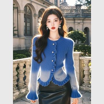 FA43871# 春季新款毛衣复古慵懒撞色设计感圆领小香风长袖针织开衫上衣 服裝批發女裝批發服飾貨源