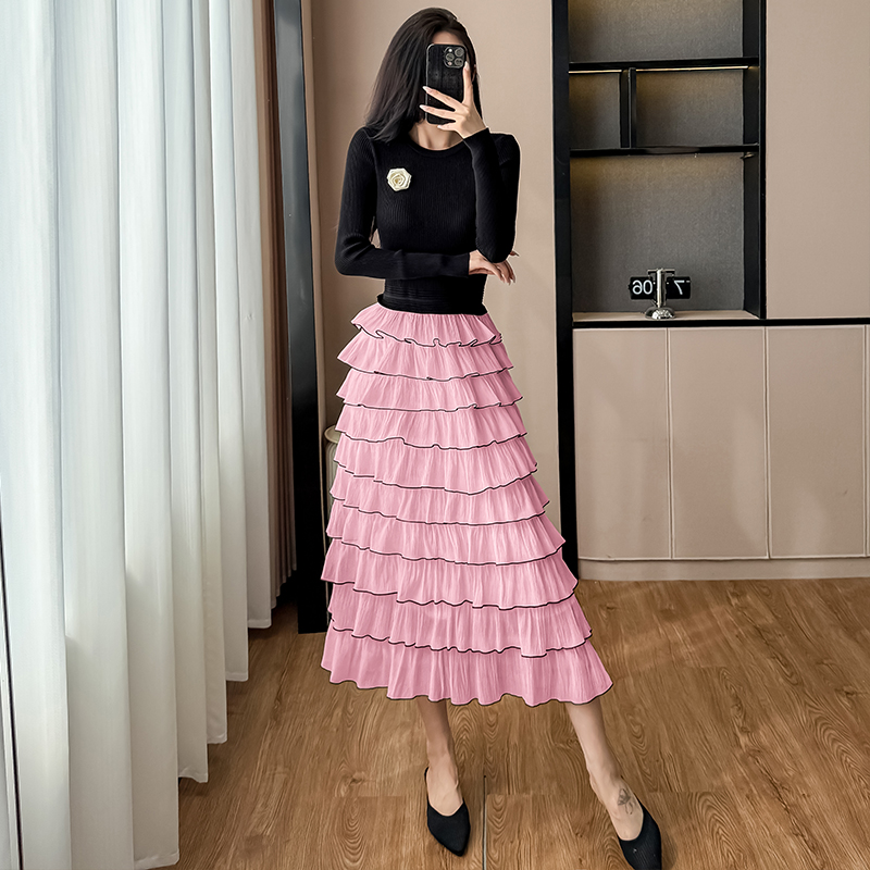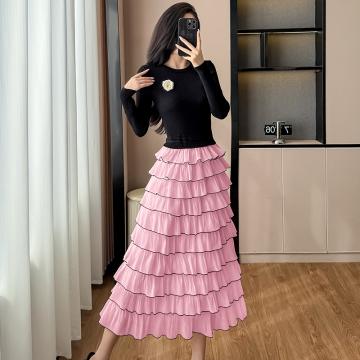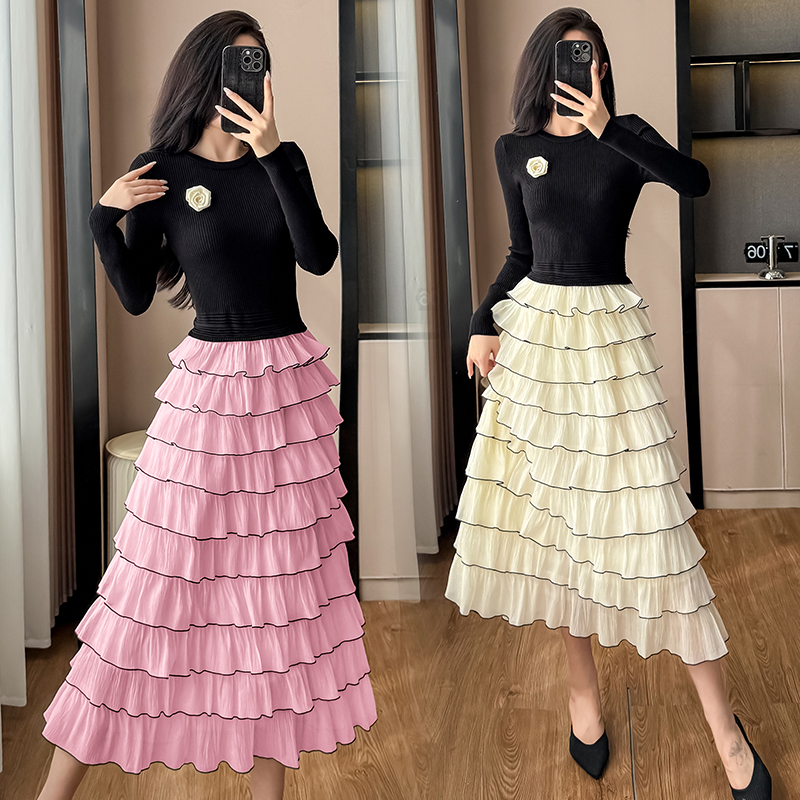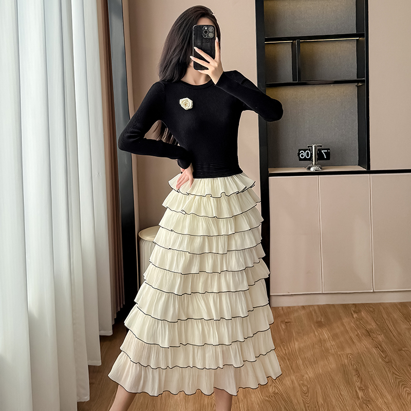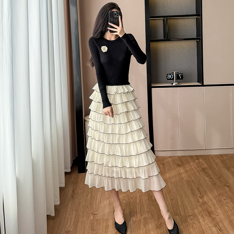 FA43885# 法式小香风连衣裙巨好看的早秋冬绝美内搭打底黑色假两件针织长裙 服裝批發女裝批發服飾貨源