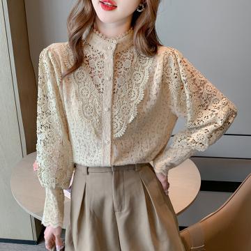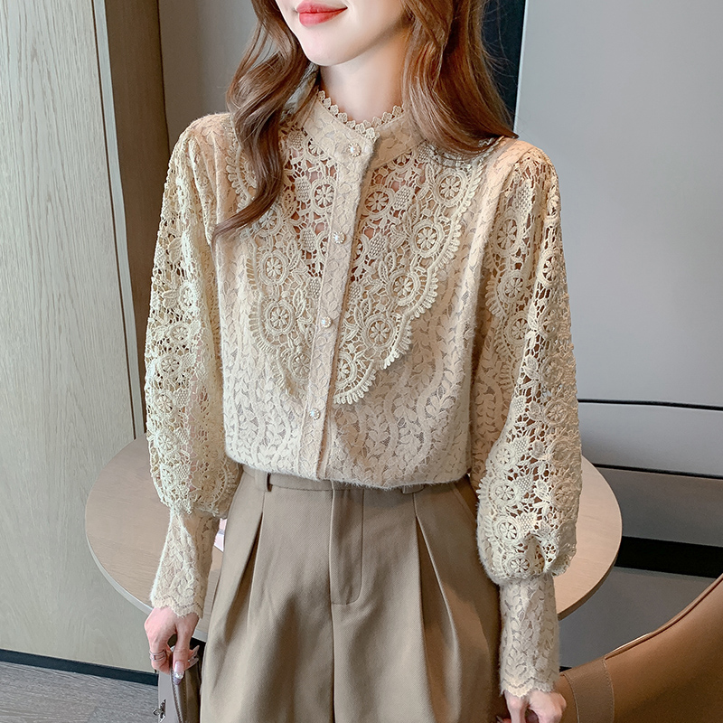 FA44451# 秋冬新款韩版百搭镂空长袖蕾丝打底衫女长袖蕾丝衫 服裝批發女裝批發服飾貨源