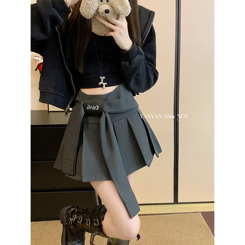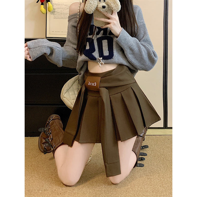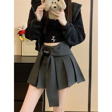 FA44486# 美式复古褶皱半身裙女秋季高腰百搭A字裙包臀防走光短裙 服裝批發女裝批發服飾貨源