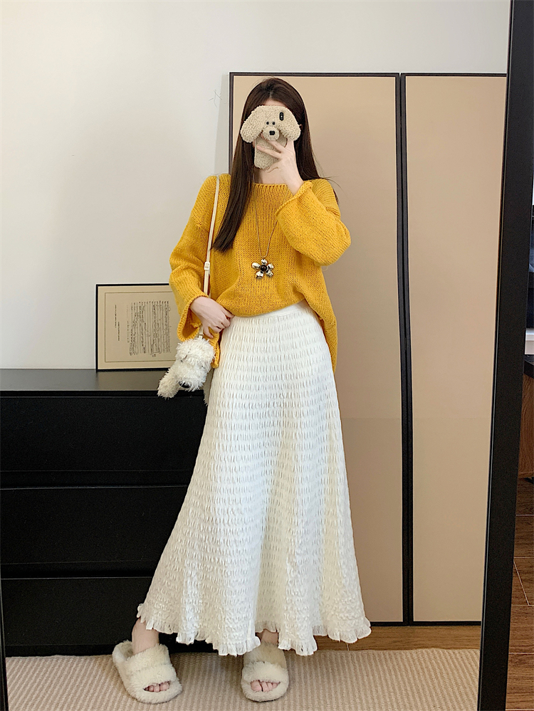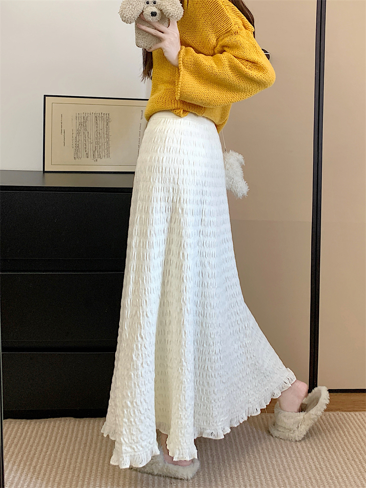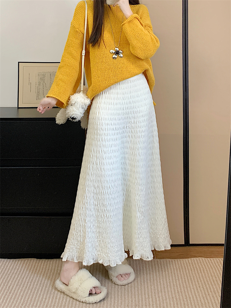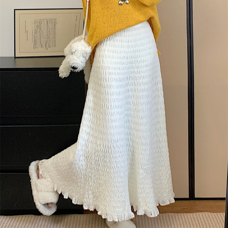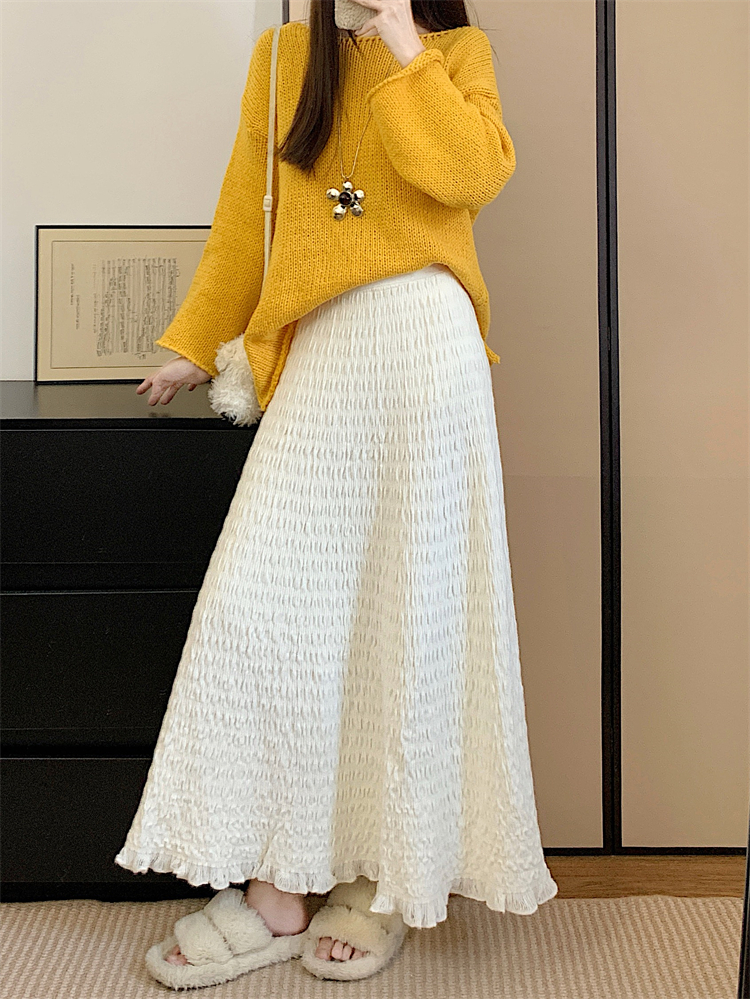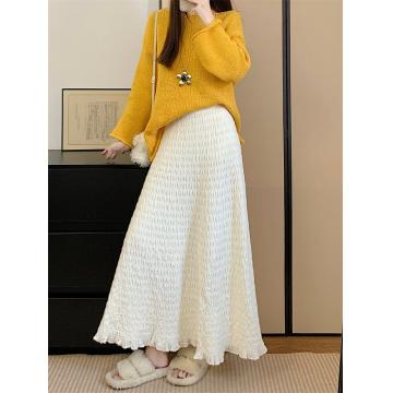 FA44493# 甜美针织半身裙秋冬新款加厚荷叶边垂感字松紧腰大摆伞裙 服裝批發女裝批發服飾貨源