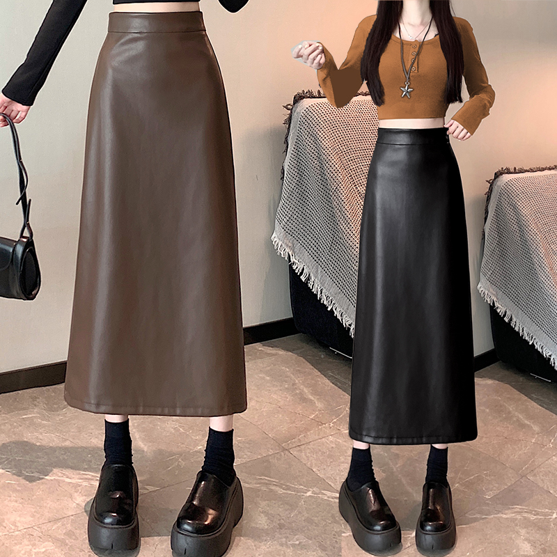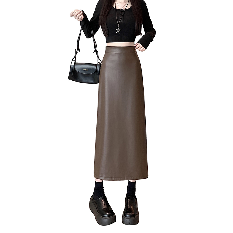 FA44924# 简约秋冬百搭通勤上班族PU皮A字中长期半身裙女 服裝批發女裝批發服飾貨源