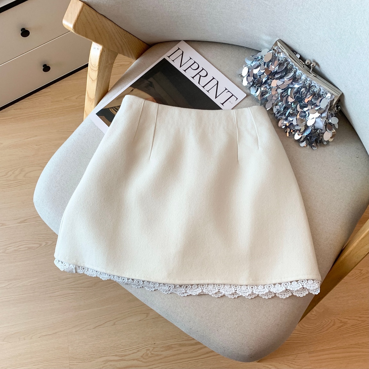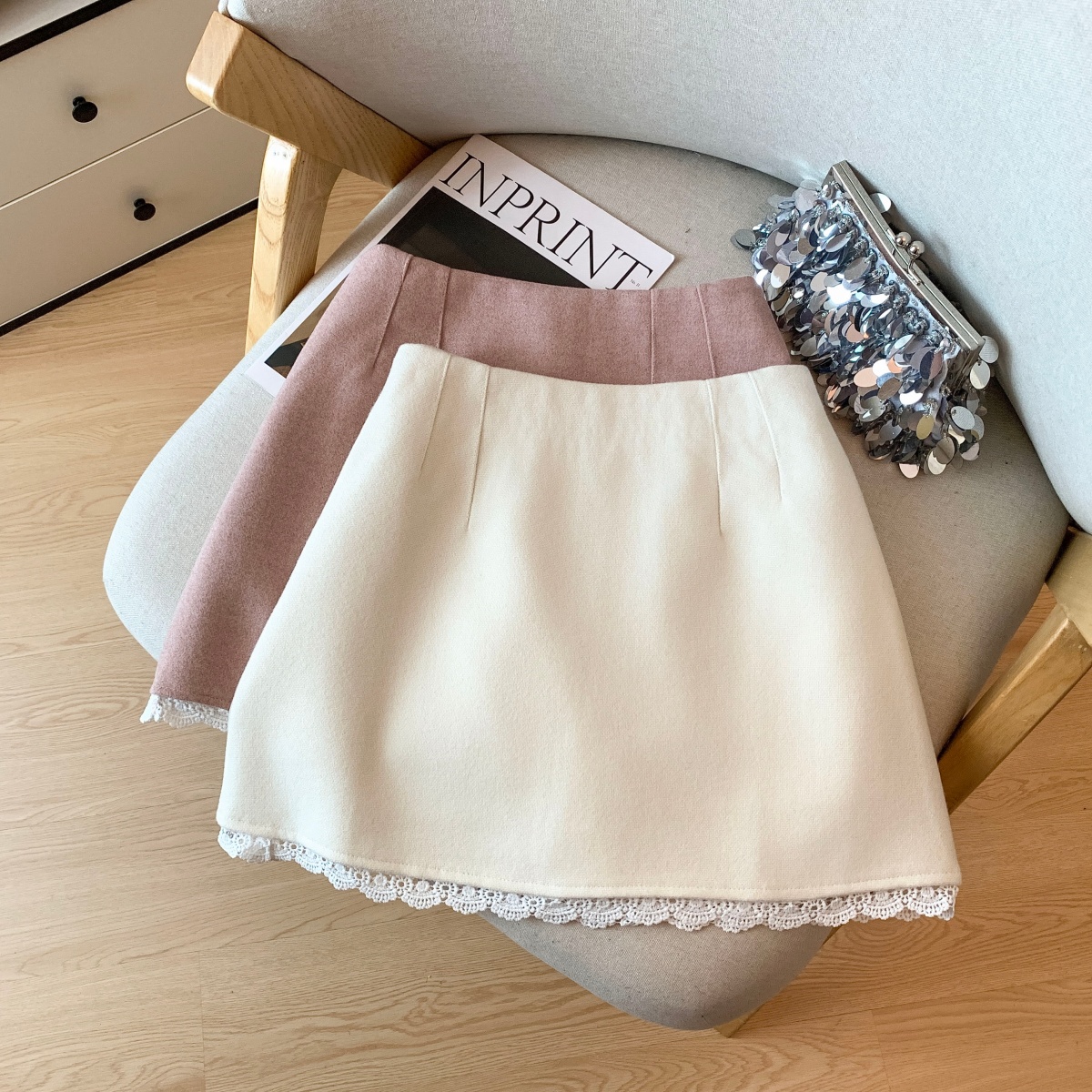 FA45116# 粉色甜美加厚毛呢半身裙女秋冬小个子高腰A字包臀小香风气质短裙 服裝批發女裝批發服飾貨源