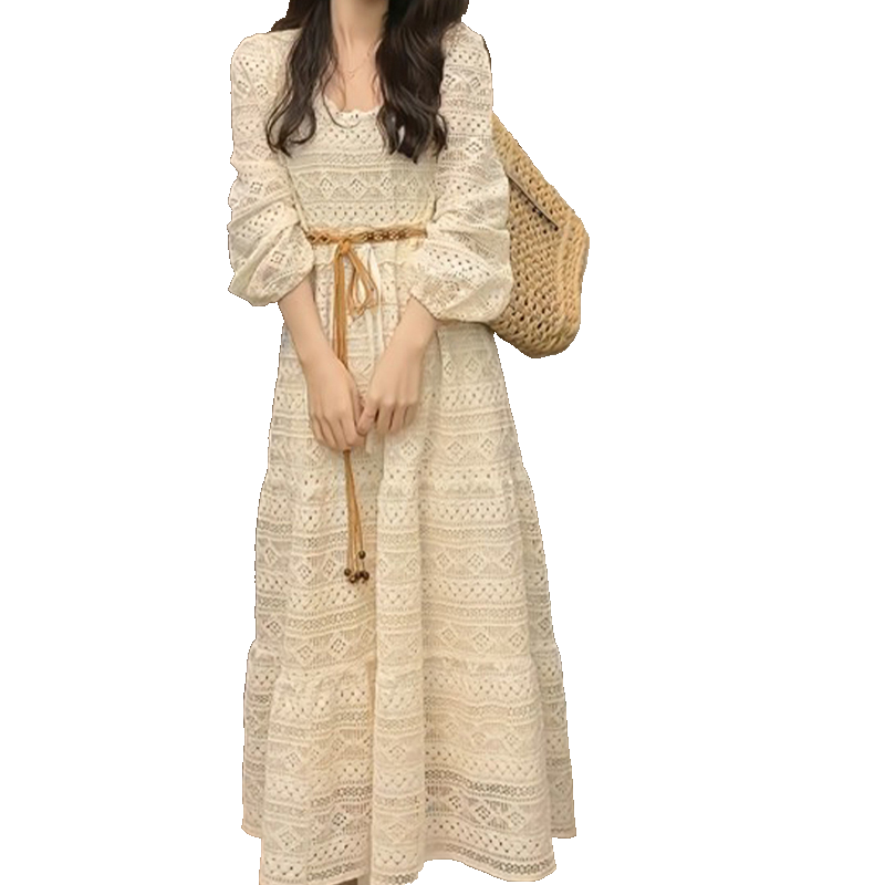 FA45146# 秋季法式长袖连衣裙女春装新款气质女神范白色设计感镂空长裙 服裝批發女裝批發服飾貨源