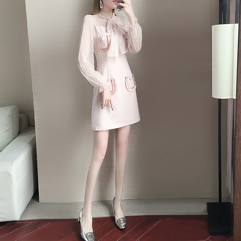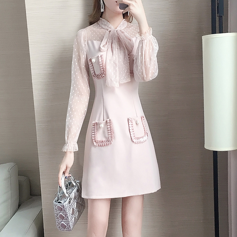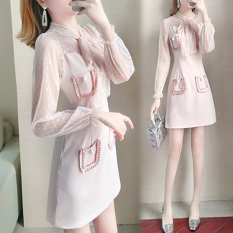FA45147# 秋装仙女连衣裙薄款新款小个子气质别致仙女裙休闲粉色裙子 服裝批發女裝批發服飾貨源