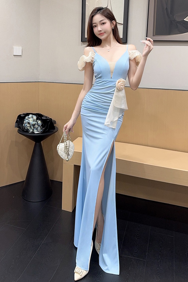 FA45191# 性感一字肩吊带晚礼服减龄柔式工作服spa技师修身显瘦夜场连衣裙 服裝批發女裝批發服飾貨源
