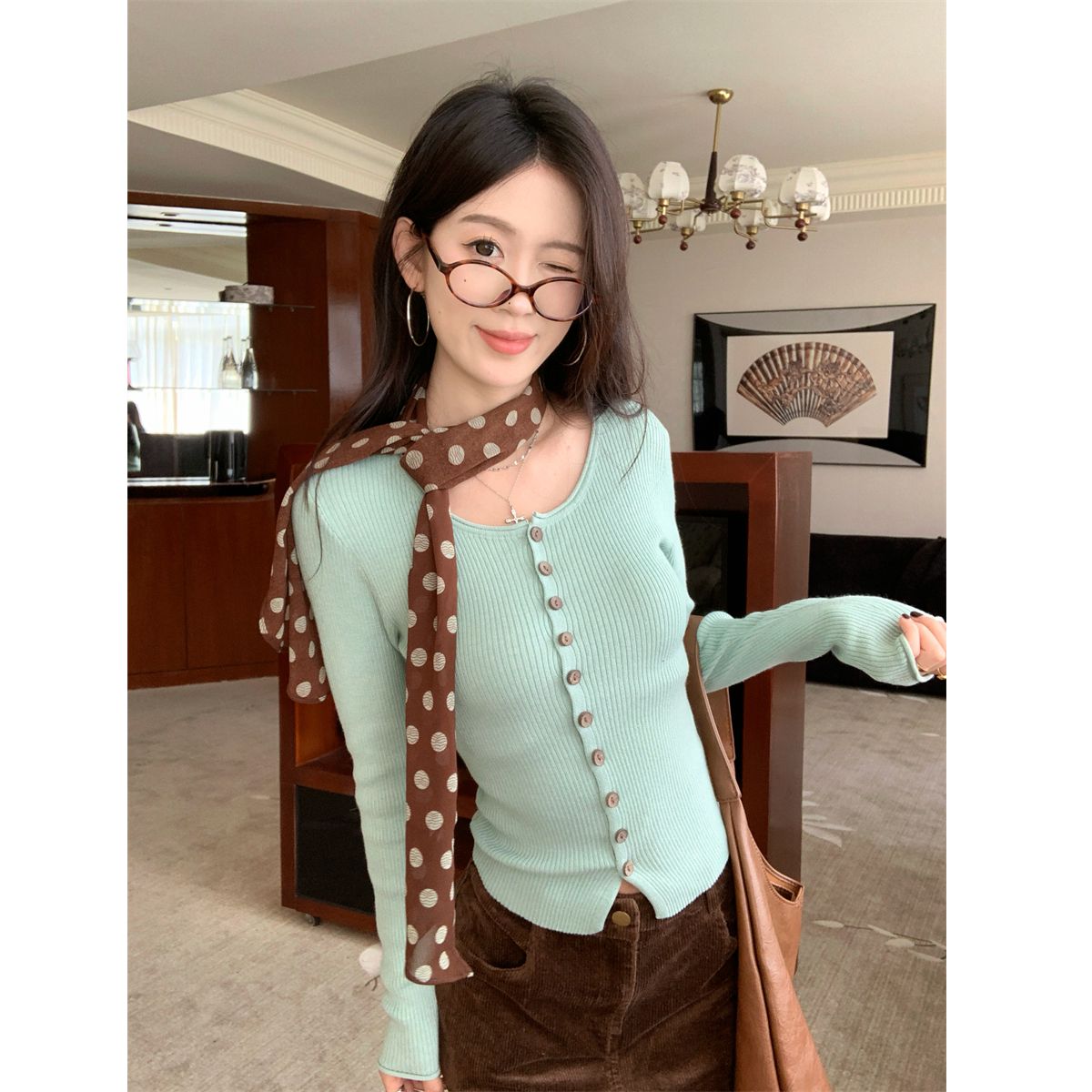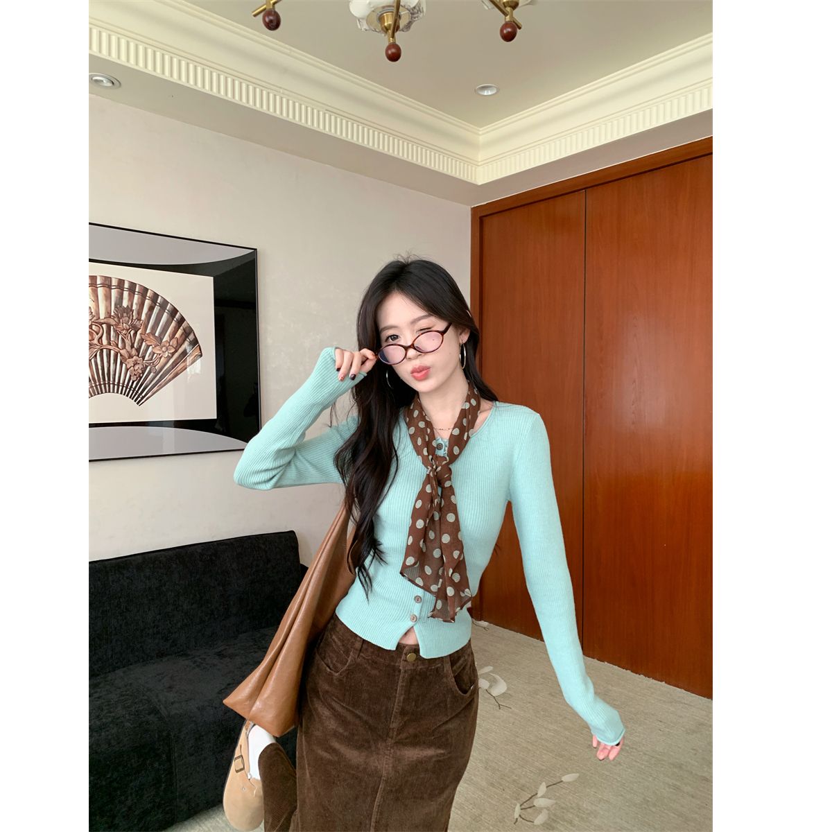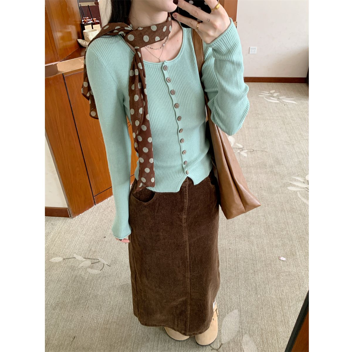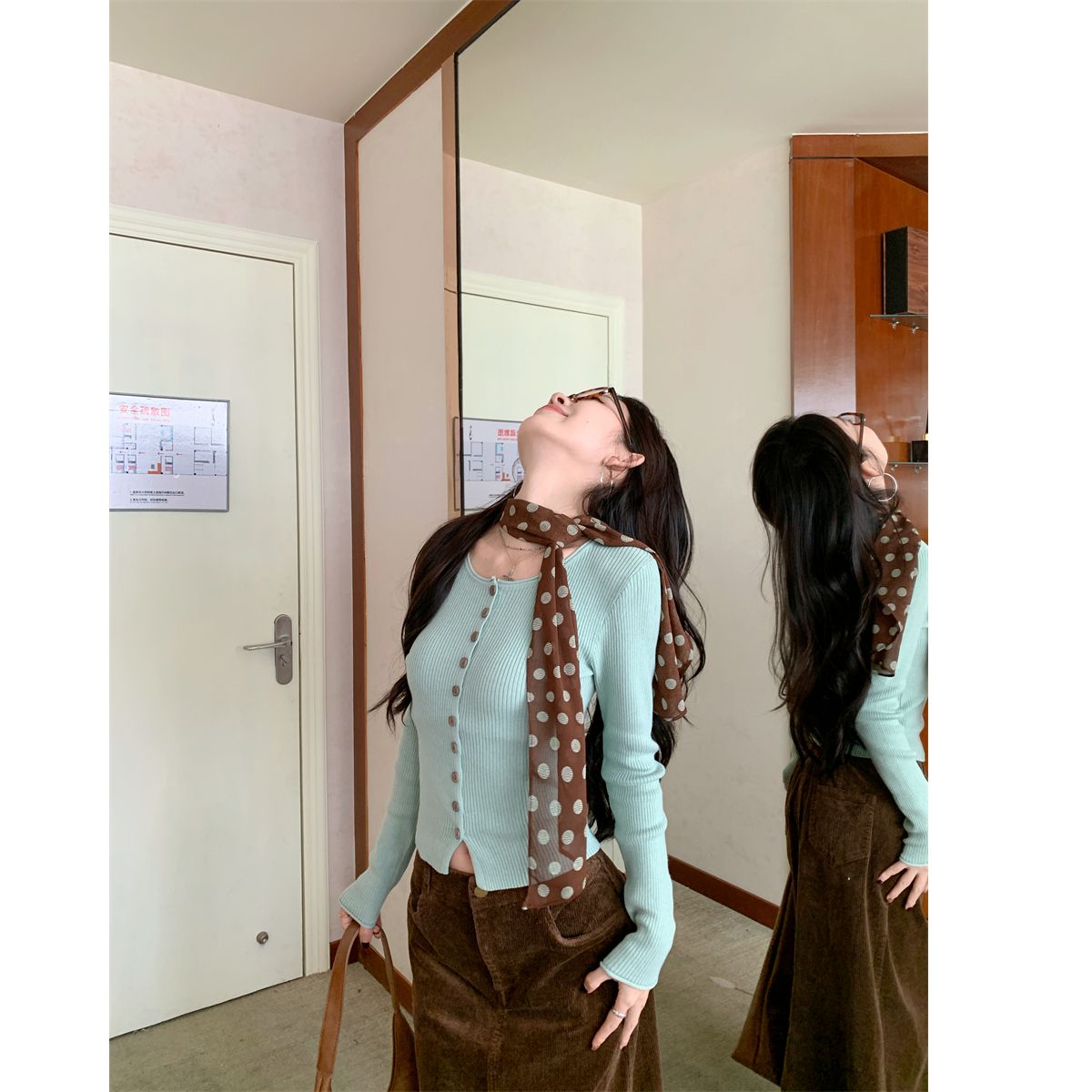 绿色开衫【配丝巾】