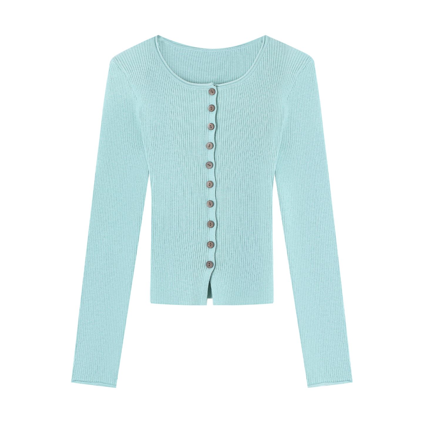 FA45378# 舒肤绒绿色单排扣圆领长袖针织衫上衣韩系套装女秋季复古上衣 服裝批發女裝批發服飾貨源