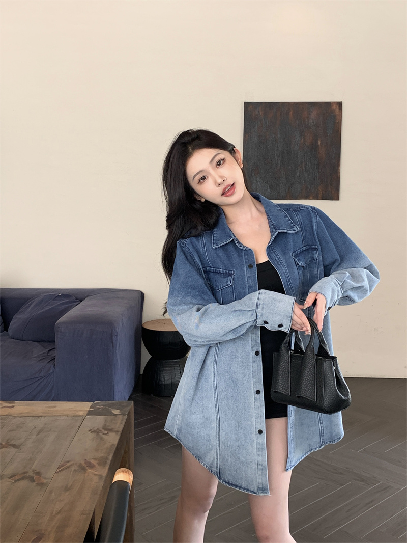 Home > 风衣、西装外套 > FA45414# 复古做旧牛仔衬衫女早秋新款新品宽松韩版长袖衬衣外套潮 服裝批發女裝批發服飾貨源