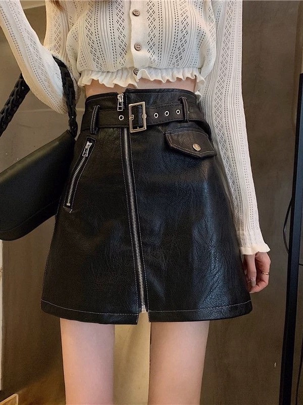 Home > 短裤、半身裙 > FA45948# 不配腰带PU小皮裙设计感a字半身裙秋冬高腰显瘦短裙外穿裙子女 服裝批發女裝批發服飾貨源