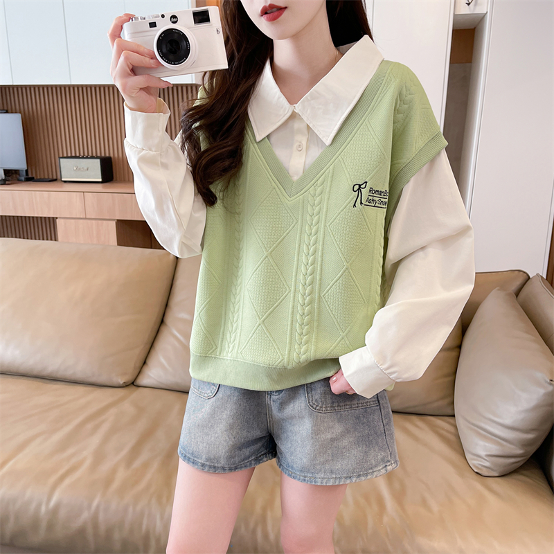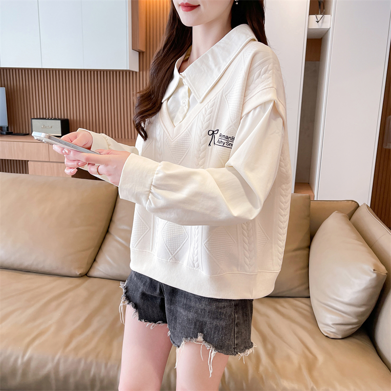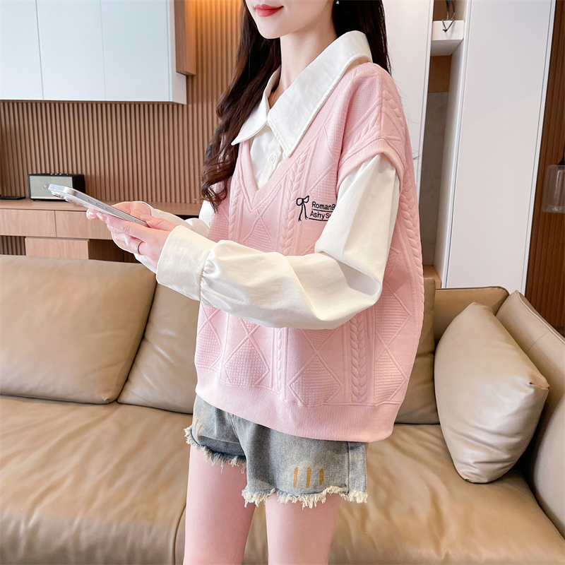 FA46152# 爆款提花秋冬季新品糖果色假两件高级设计感大码女装卫衣ins 服裝批發女裝批發服飾貨源