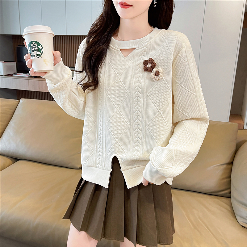 FA46167# 首发秋季新款提花OP领长袖卫衣女 服裝批發女裝批發服飾貨源