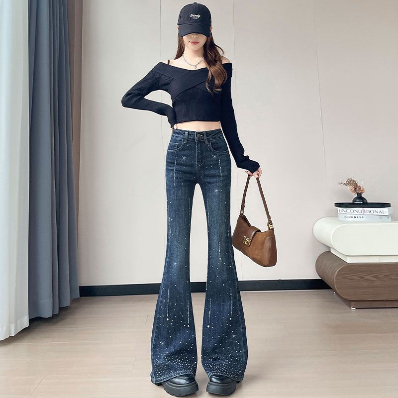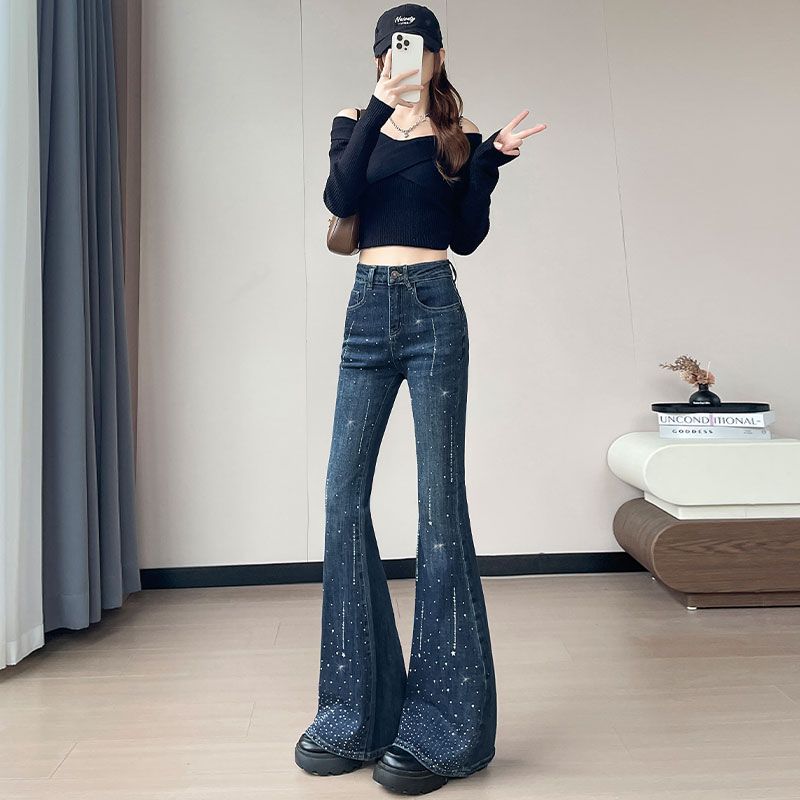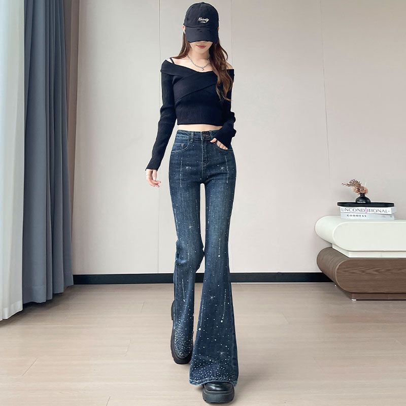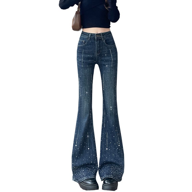 FA46181# 闪钻紧身辣妹微喇牛仔裤女冬季新款爆款满天流星设计感喇叭裤 服裝批發女裝批發服飾貨源