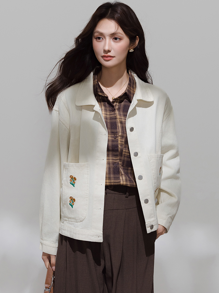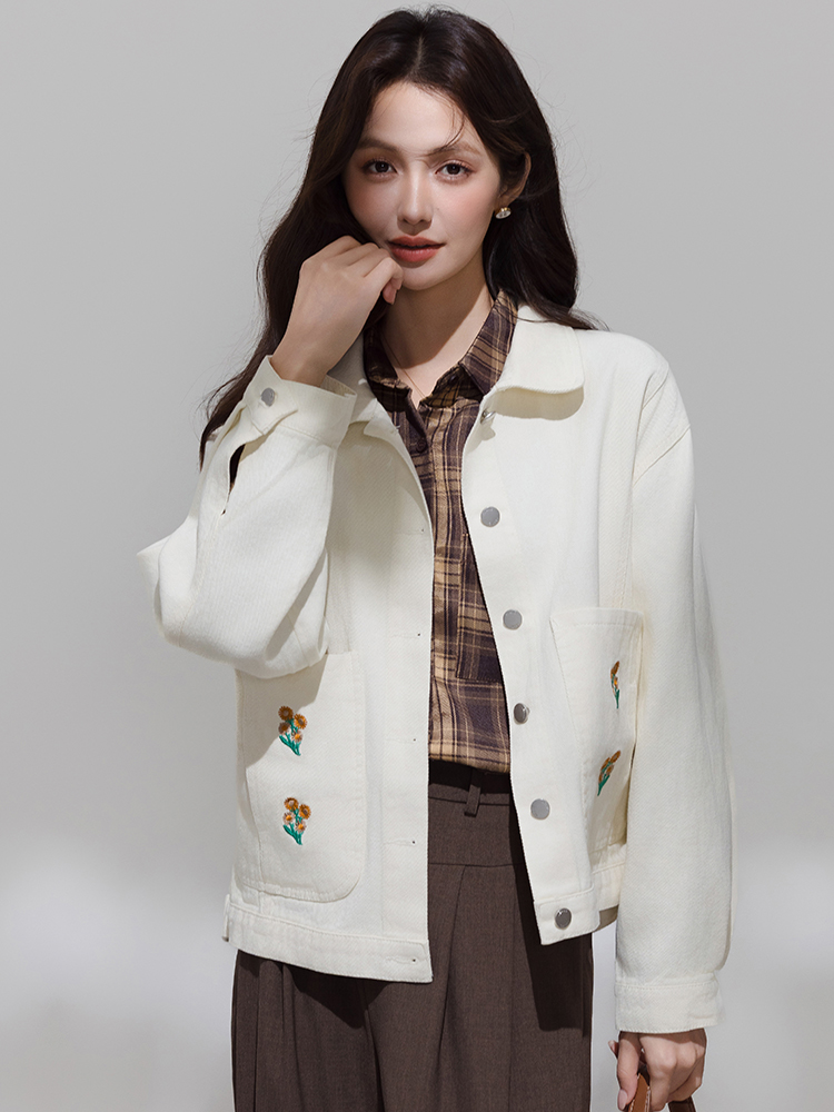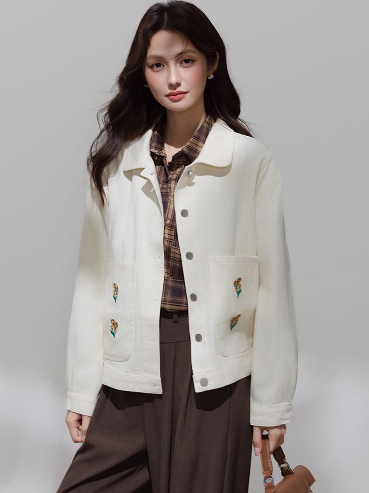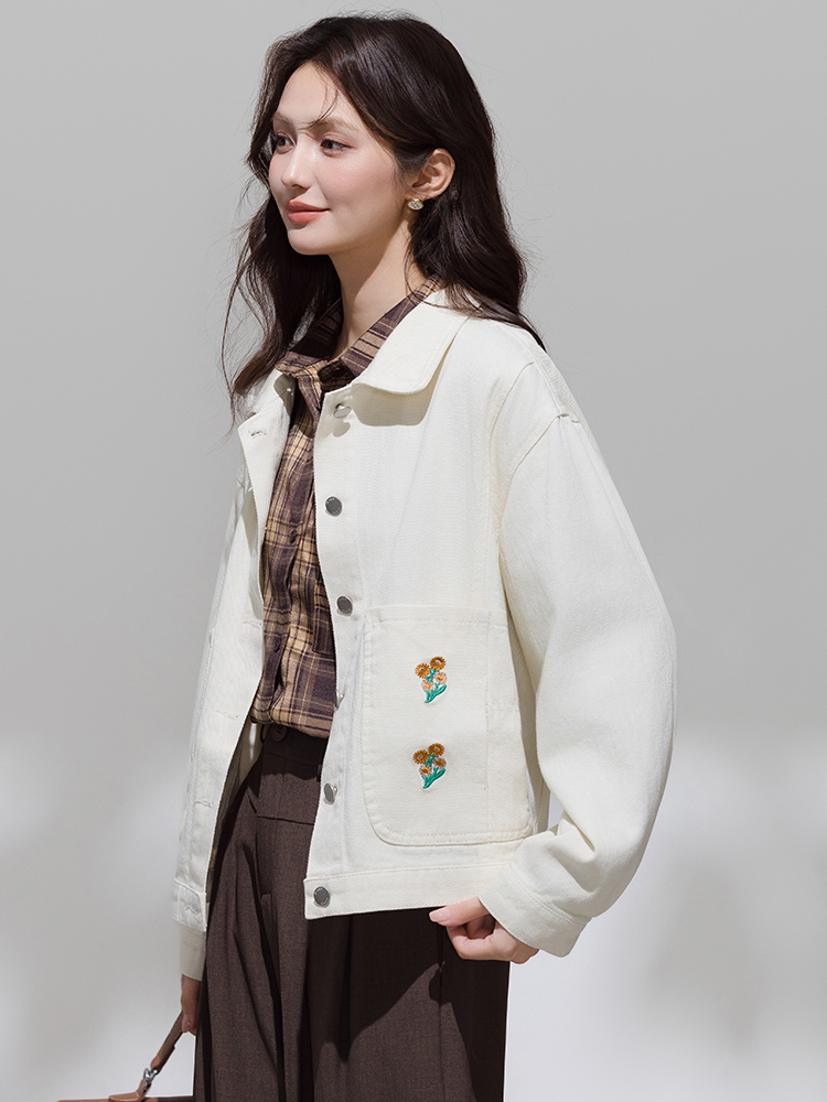 FA46185# 小清新韩系甜美小个子刺绣牛仔外套女秋季新款设计感小众上衣 服裝批發女裝批發服飾貨源