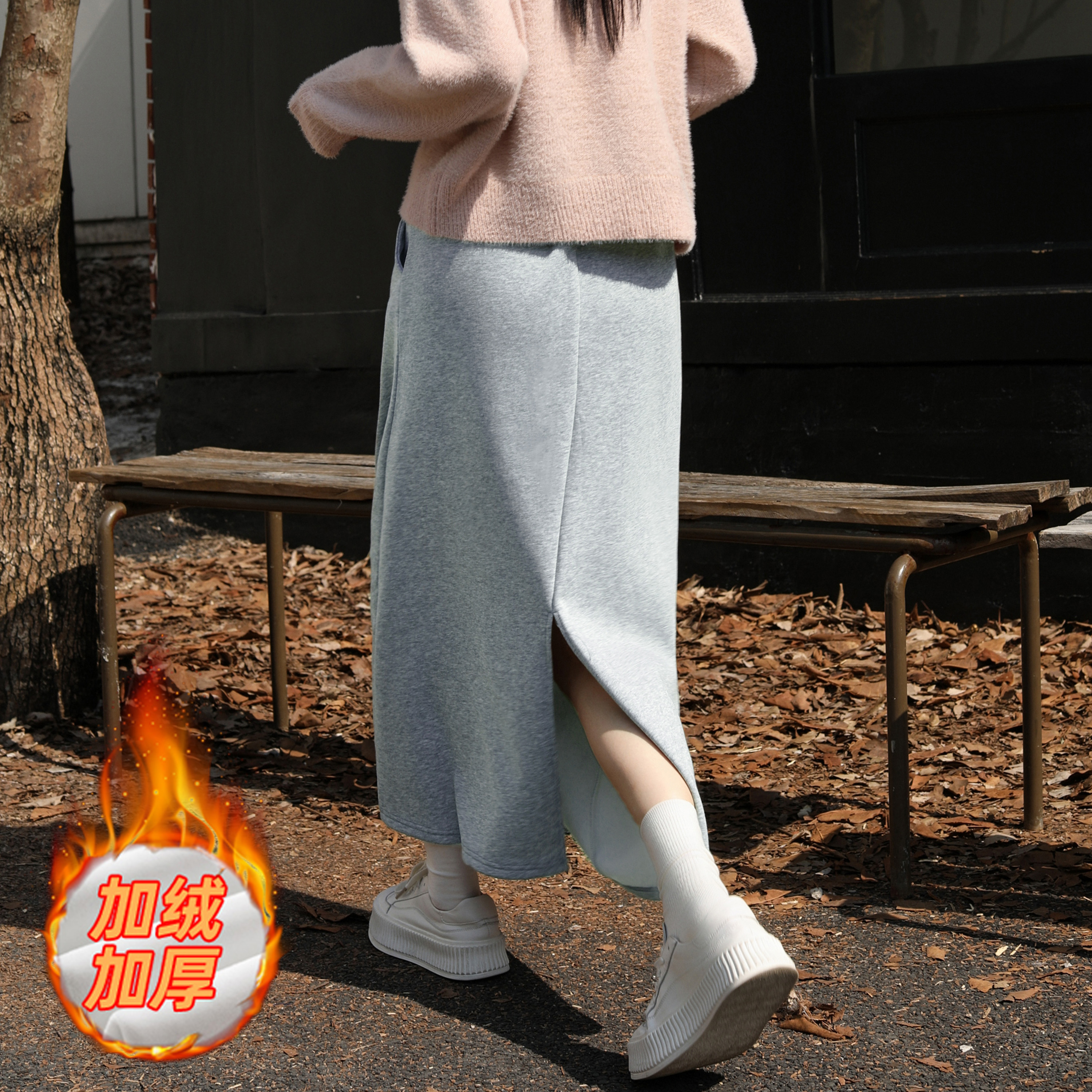 FA46532# -华棉复合宝宝绒新款百搭后开叉休闲纯色半身裙