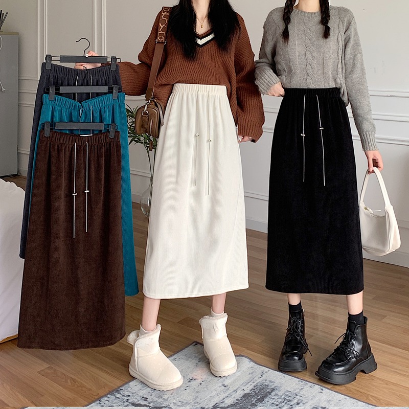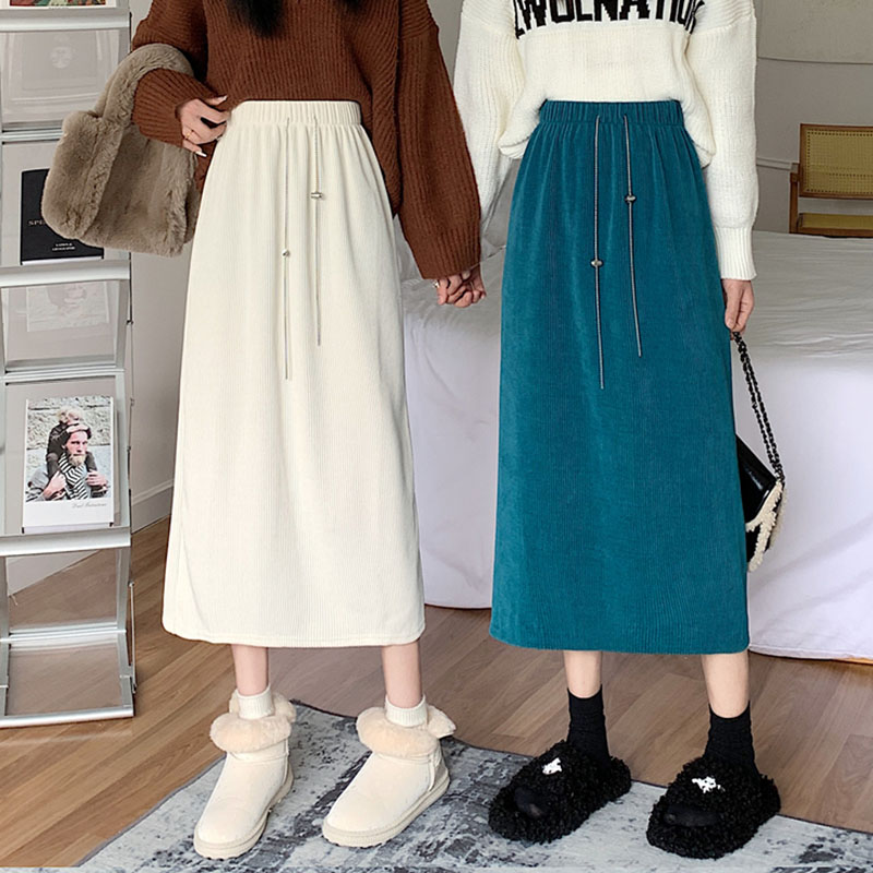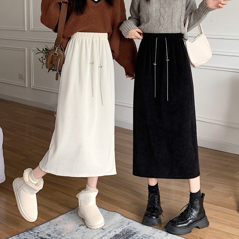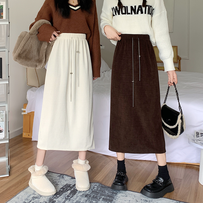FA46534# -灯芯绒加绒加厚新款链条百搭后开叉休闲半身裙女