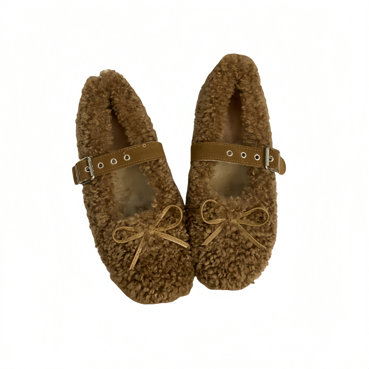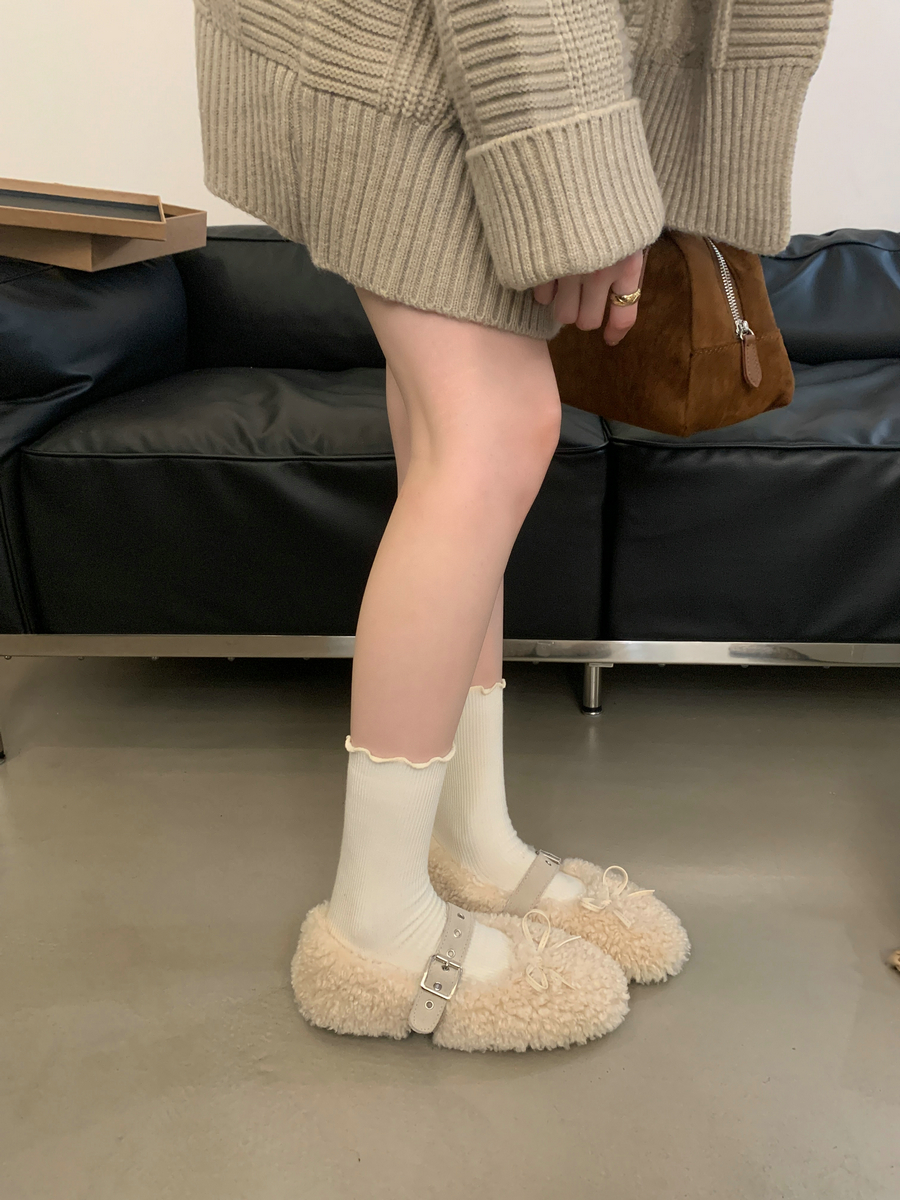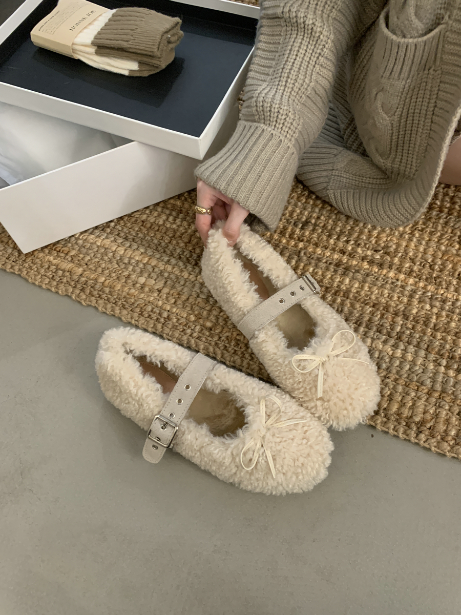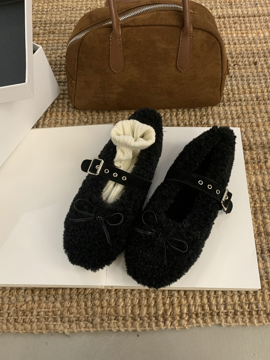 X-32892# 美呆毛毛鞋女新款蝴蝶结平底加厚玛丽珍加绒保暖羊羔毛单鞋 鞋子批发女鞋批发货源