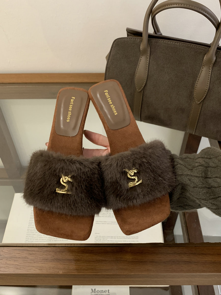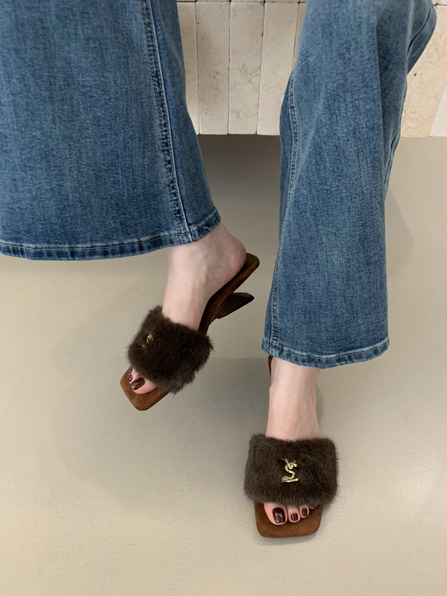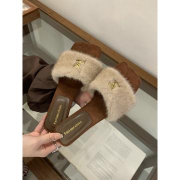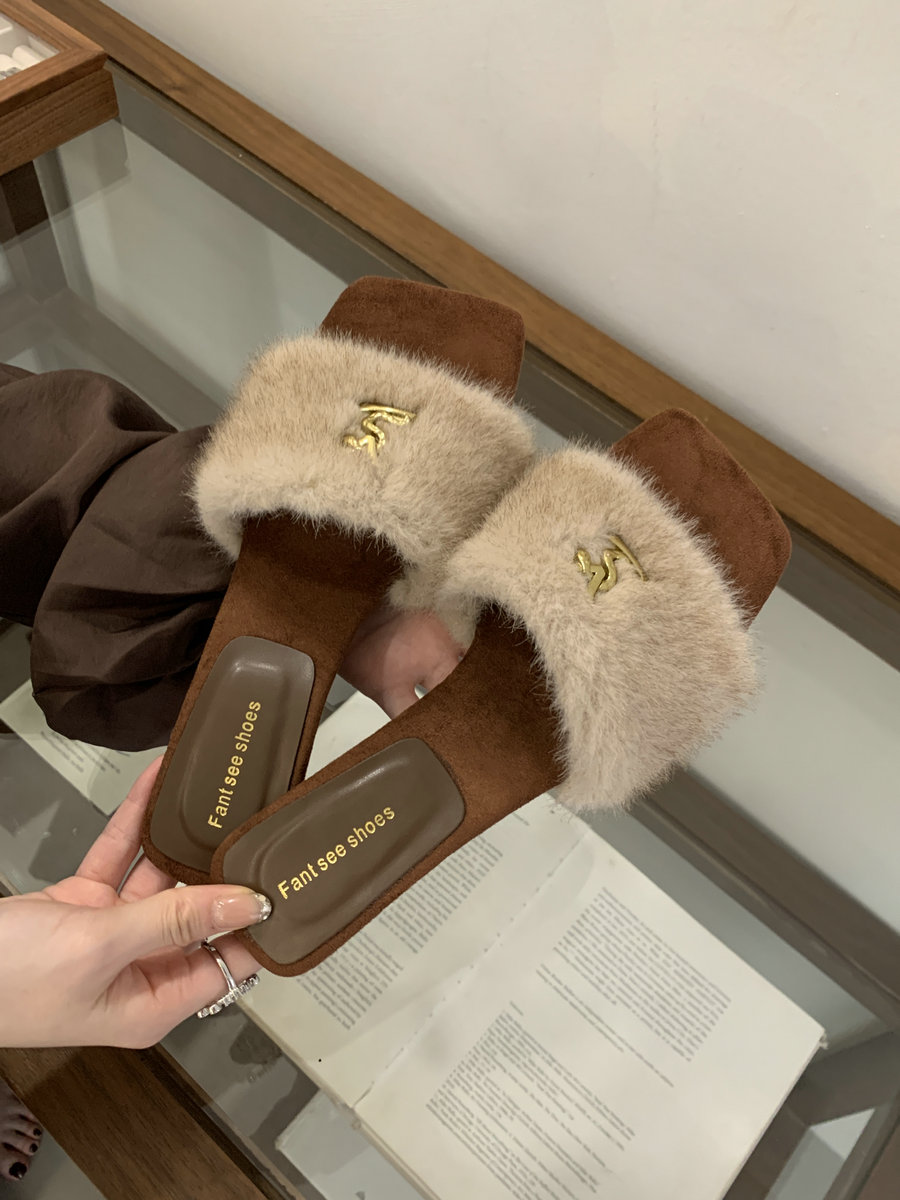 Home > 凉鞋、拖鞋 > X-32893# 秋新款时尚百搭水貂毛搭扣性感粗跟毛毛拖鞋女外穿一字拖鞋 鞋子批发女鞋批发货源