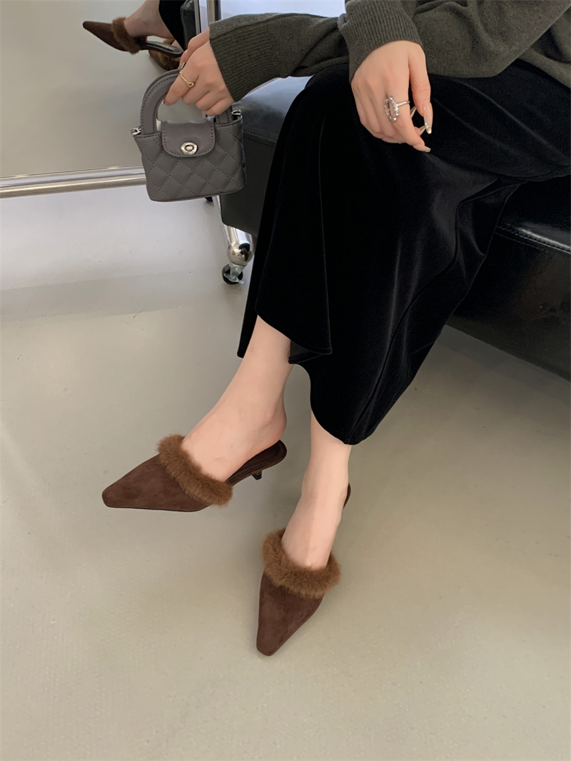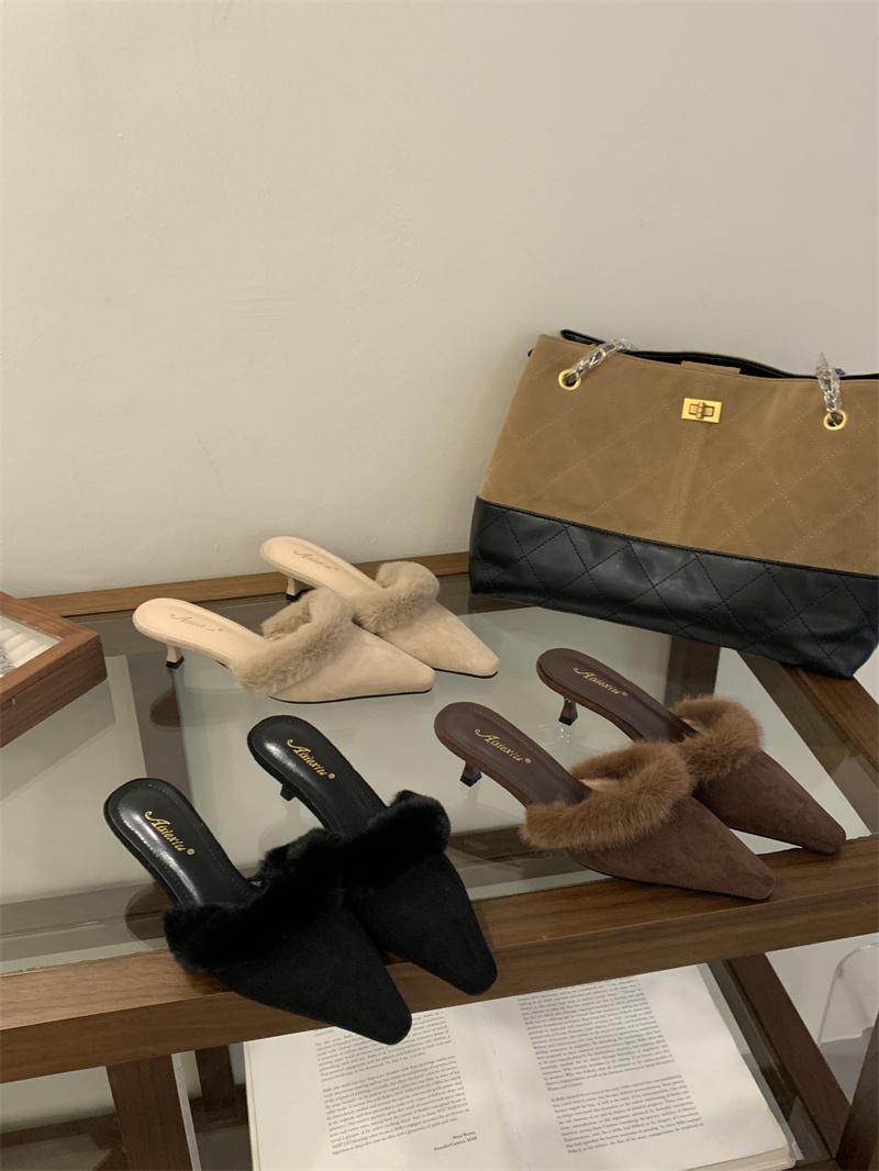 Home > 高跟鞋、坡跟鞋 > X-32911# 细跟包头毛毛拖35-39码 鞋子批发女鞋批发货源