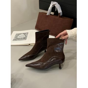 X-32935# 新款秋冬新绒面短靴时尚简约款细跟中跟气质百搭瘦瘦靴 鞋子批发女鞋批发货源