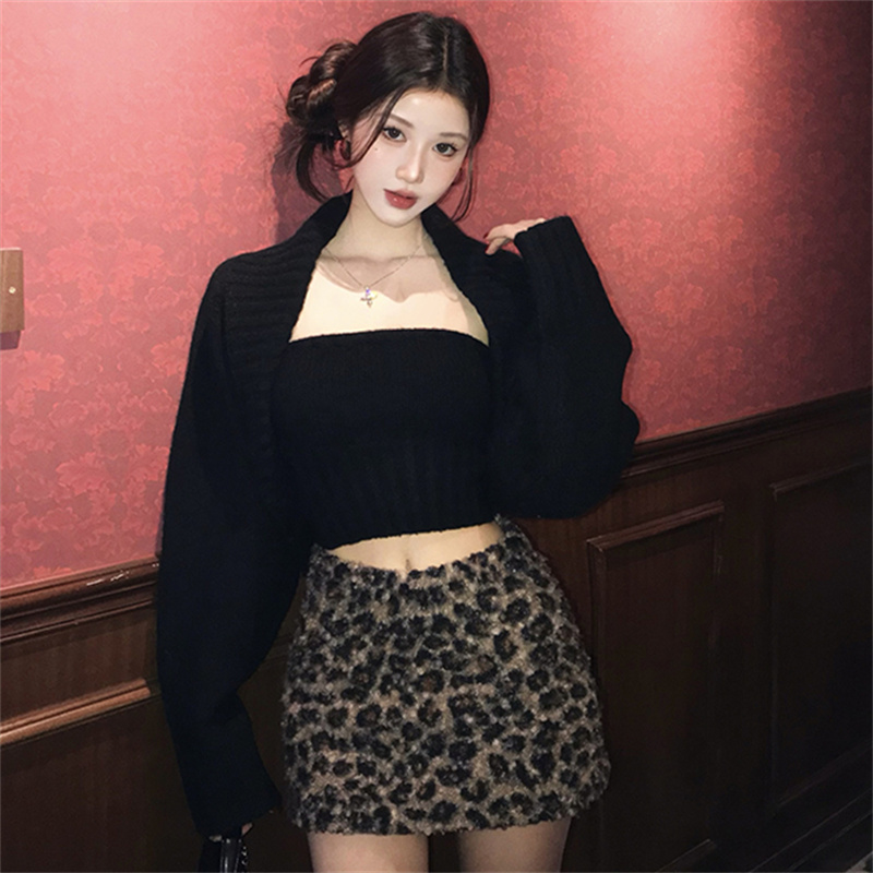 FA47137# 纯子翻领披肩毛衣外套抹胸女冬慵懒风上衣 服裝批發女裝批發服飾貨源