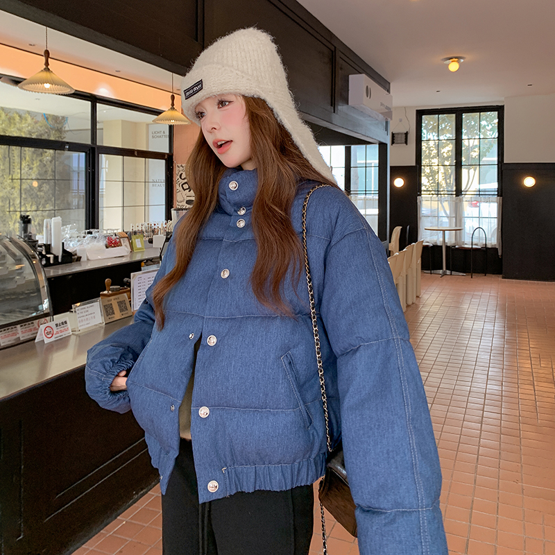 FA47271# Jennie同款蓝色牛仔女冬季短款棉服宽松面包服立领棉衣外套 服裝批發女裝批發服飾貨源