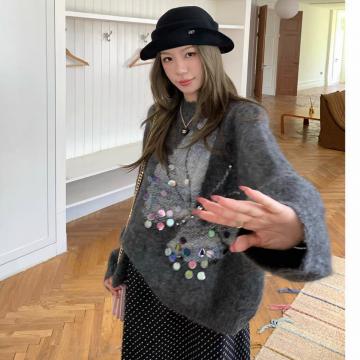 FA47285# 工厂蝴蝶提花手缝亮片慵懒风羊驼毛针织衫厚毛衣女冬 服裝批發女裝批發服飾貨源