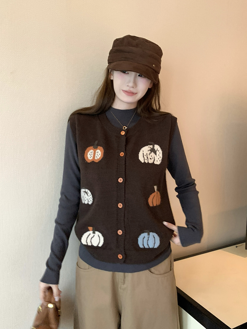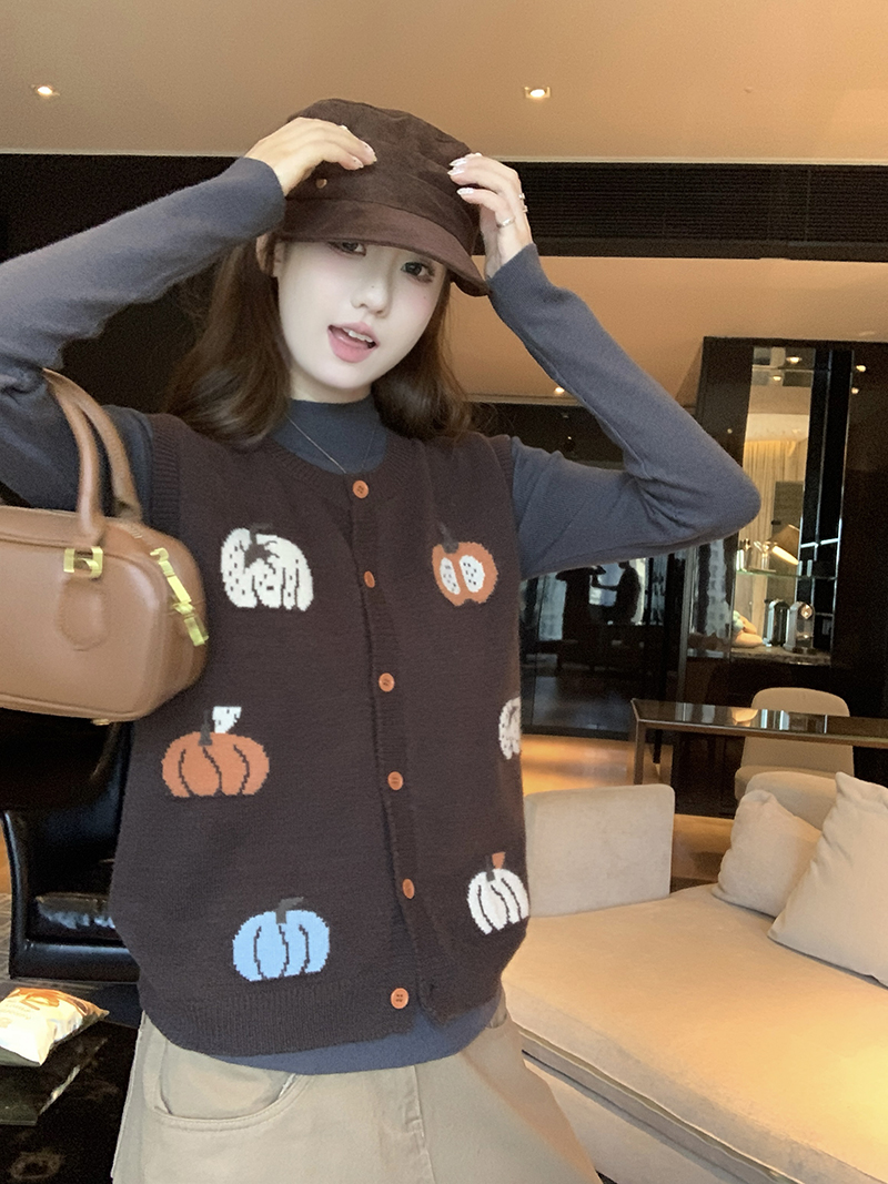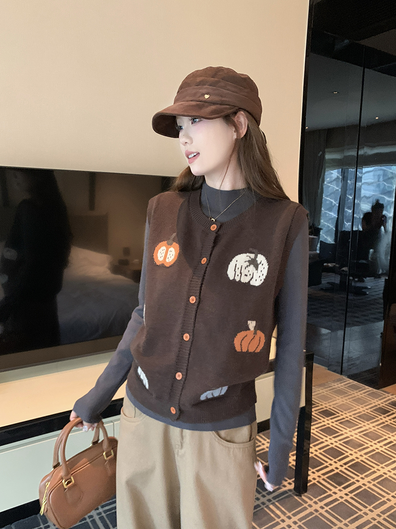 FA47389# 新款老钱风复古针织马甲毛衣背心女 服裝批發女裝批發服飾貨源