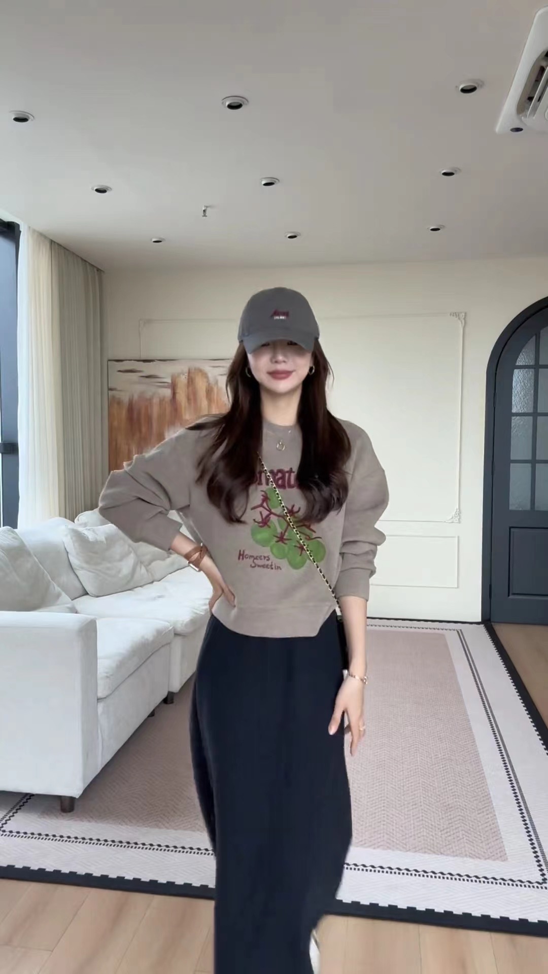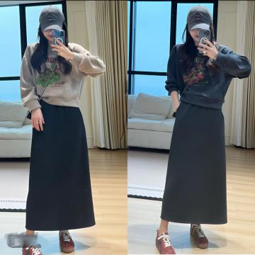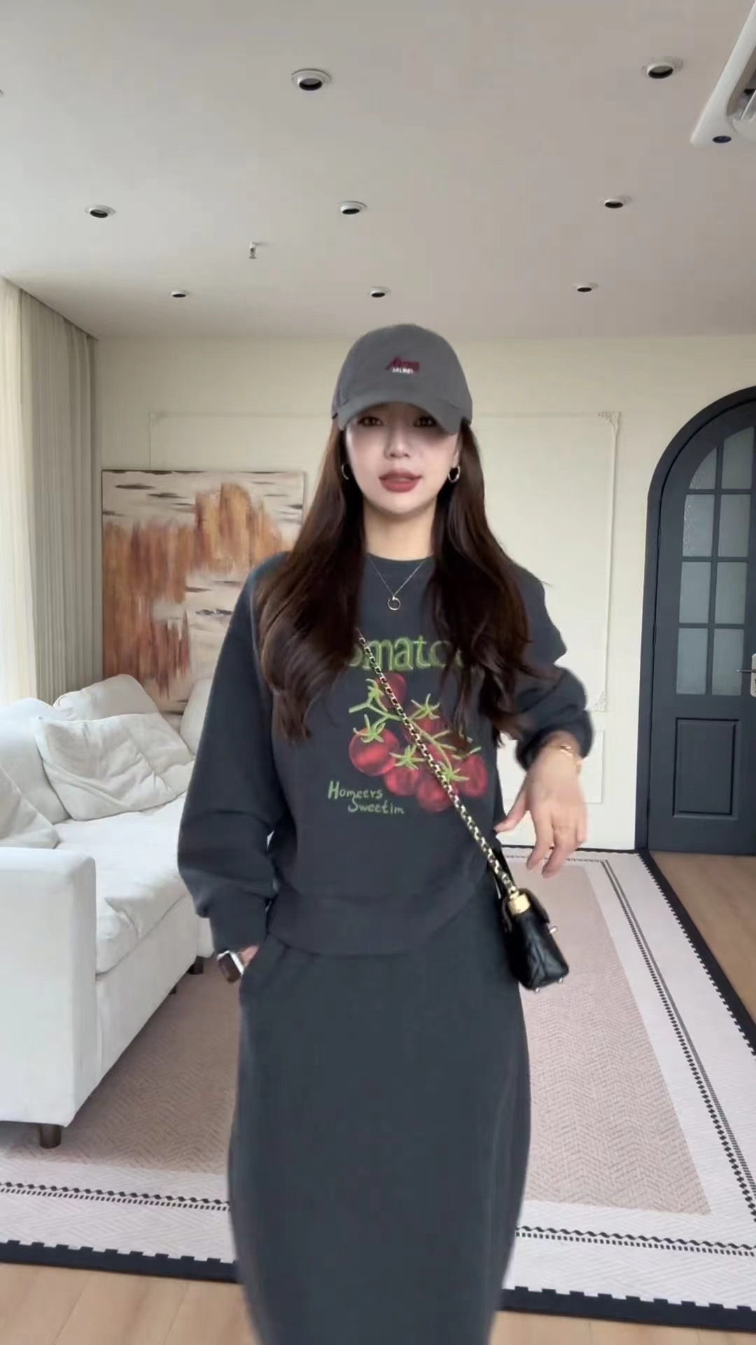 FA47520# 款百搭休闲时尚番茄印花圆领卫衣简约开叉半身裙两件套 服裝批發女裝批發服飾貨源