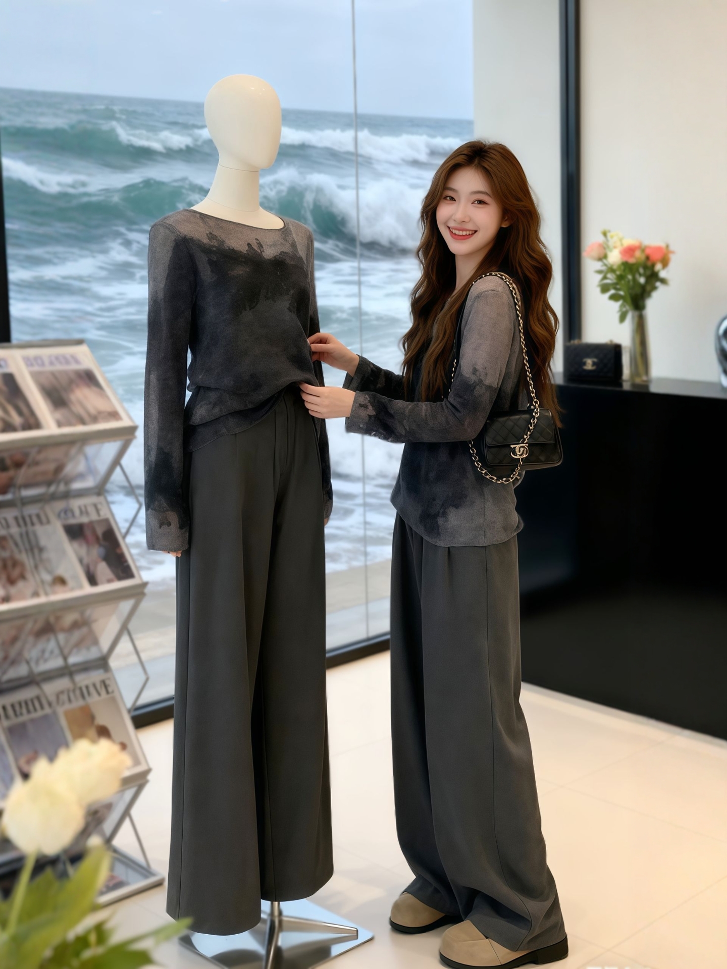 FA47566# 秋季搭配一整套大码胖mm针织衫休闲阔腿裤高级时尚通勤两件套装女 服裝批發女裝批發服飾貨源