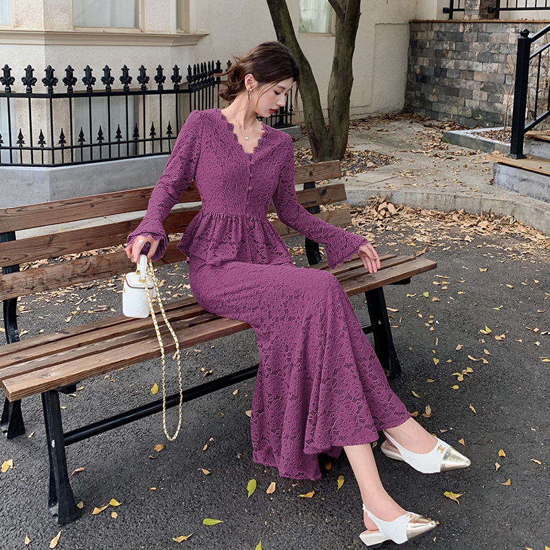 FA47725# 十三行品质蕾丝上衣高级感包臀鱼尾裙套装设计感打底衬衫 服裝批發女裝批發服飾貨源