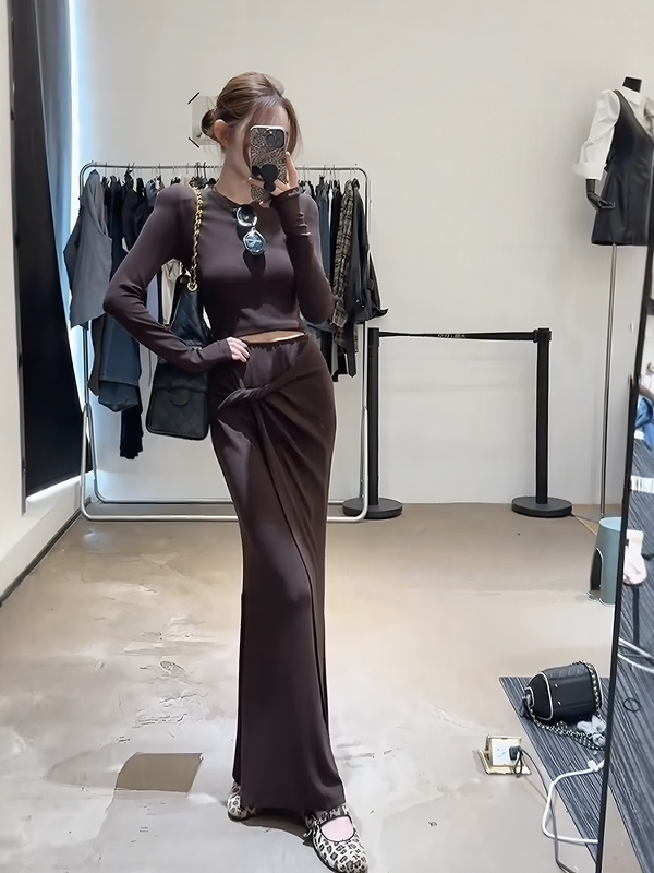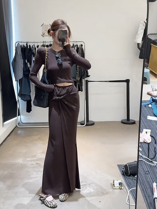 咖色套装【上衣+半身裙】