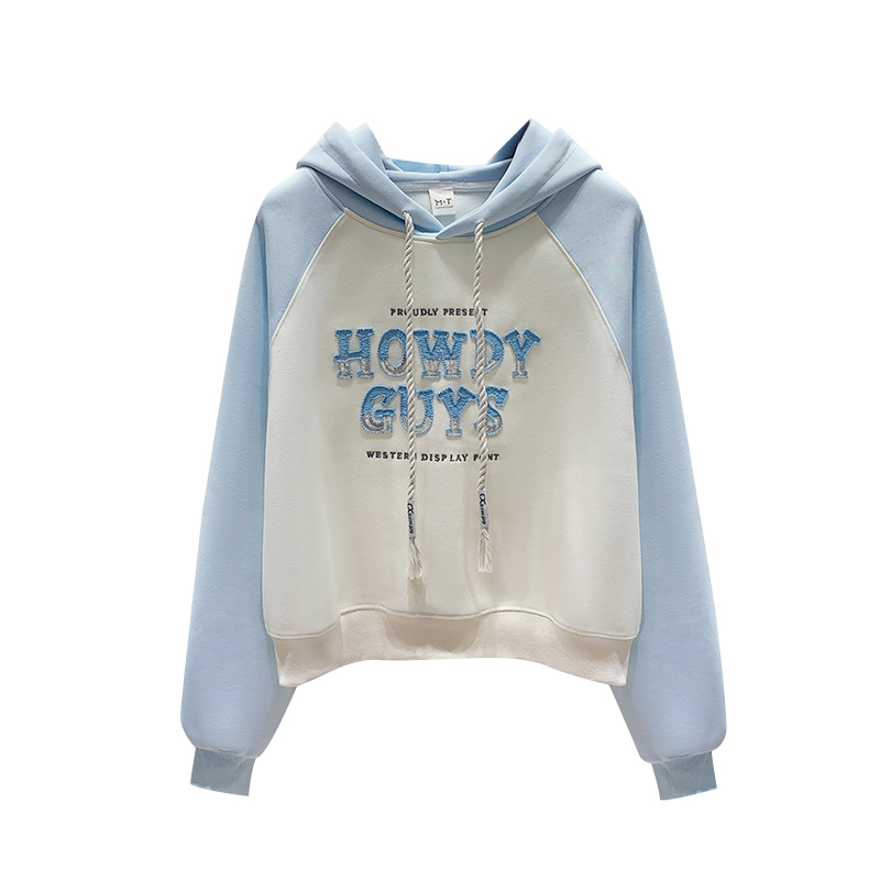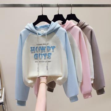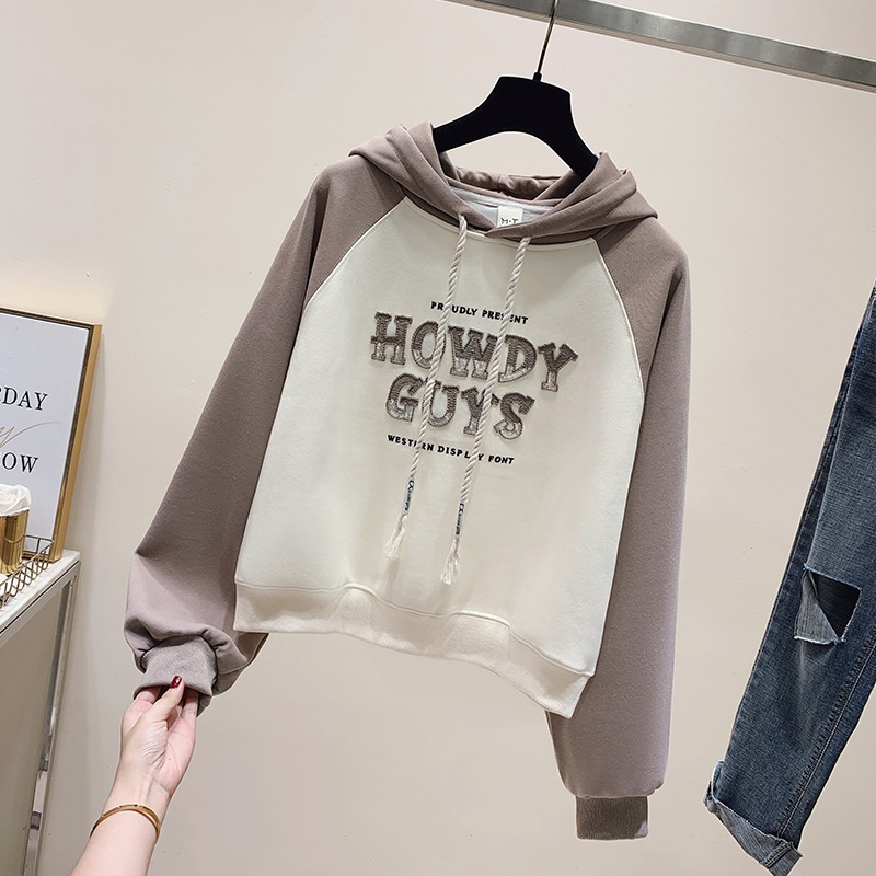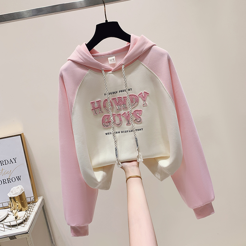FA48880# 秋季新款女装卫衣洋气插肩袖字母外套百搭学院风连帽 服裝批發女裝批發服飾貨源