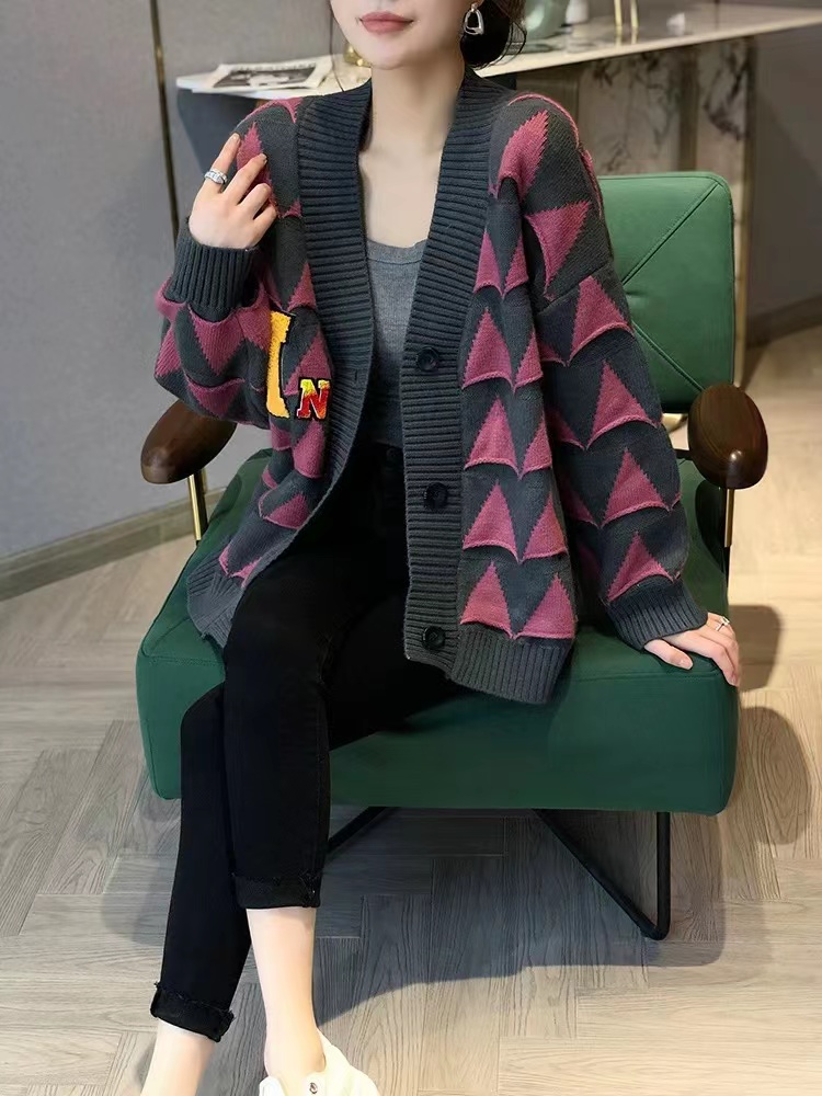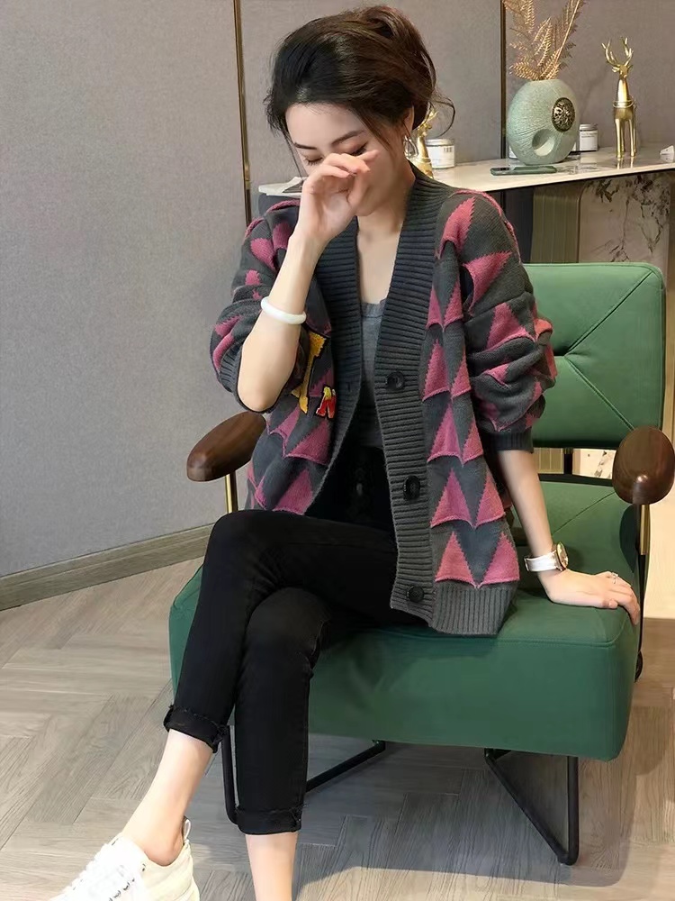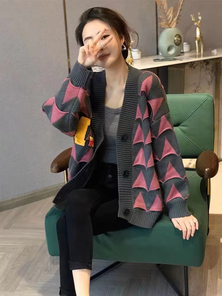 FA49285# 粉红色针织外套女设计感小众时尚小香风上衣秋季新款欧洲站 服裝批發女裝批發服飾貨源