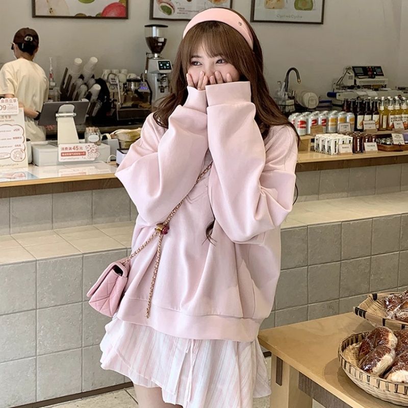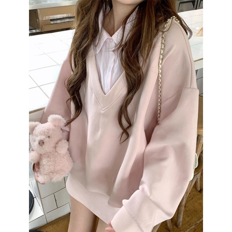 FA49287# 新款纯棉华棉薄款/加绒假两件POLO领卫衣 服裝批發女裝批發服飾貨源