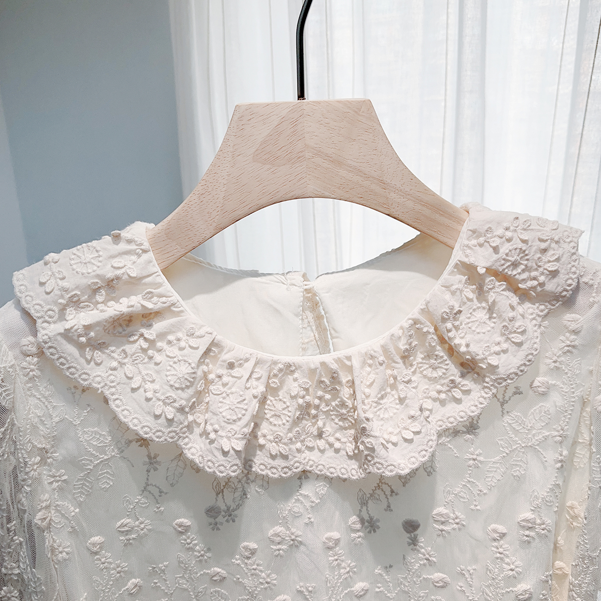 FA49520# 春秋蕾丝花边娃娃领外穿打底衬衫女小众百搭叠穿上衣