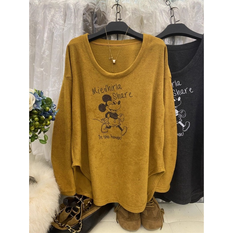 FA49531# 韩版新款时尚气质卡通印花长袖T恤女宽松显瘦加绒软糯