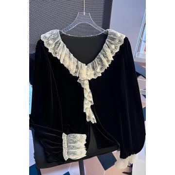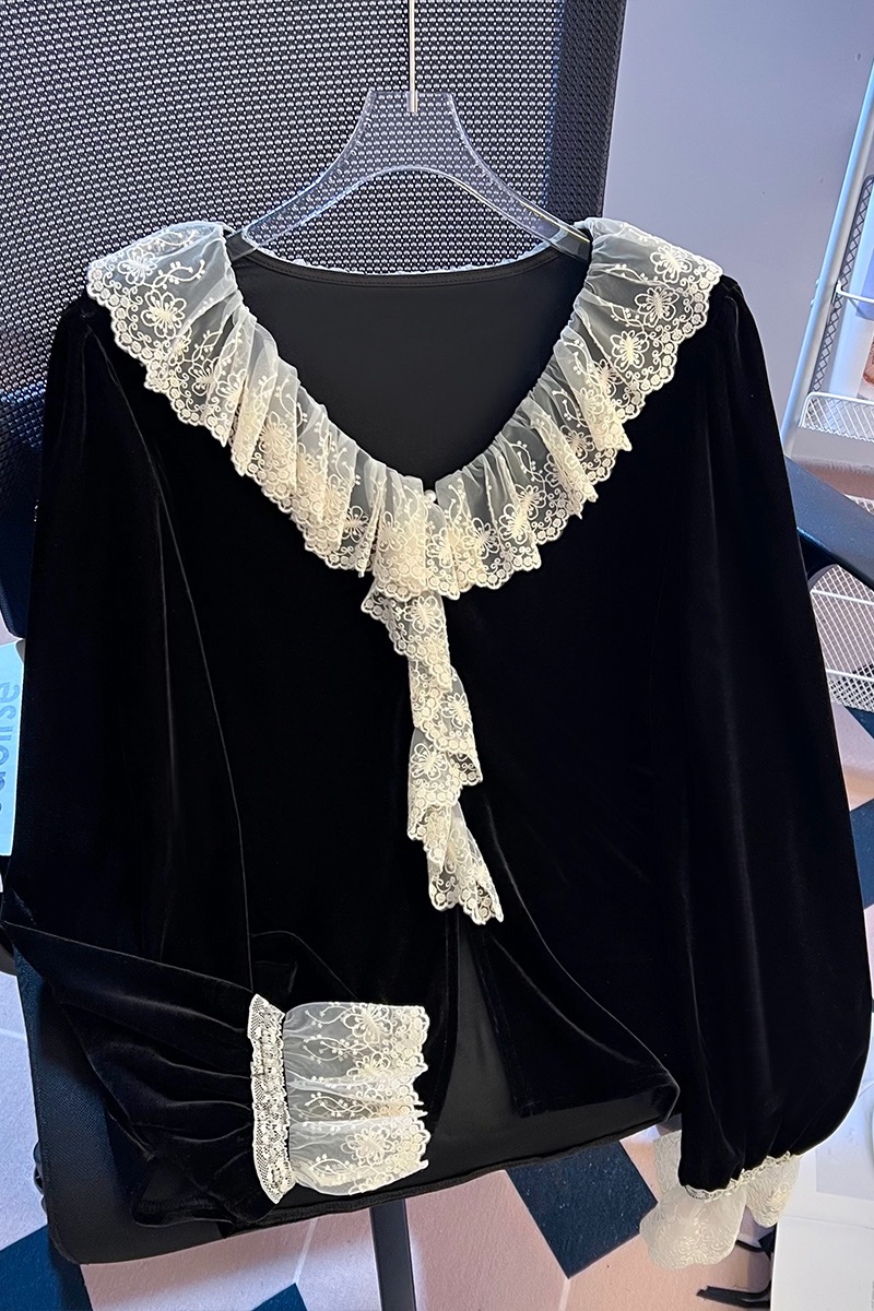 FA49567# 法式蕾丝花边拼接设计感衬衫新款温柔风漂亮小众上衣女