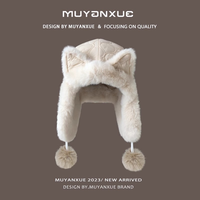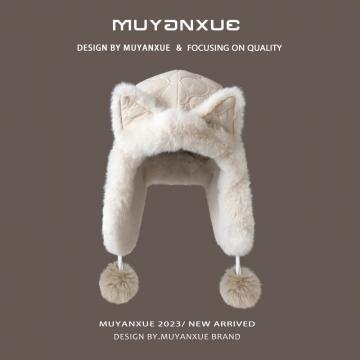 FA49631# 狐狸耳朵毛绒帽子女冬季可爱加厚加绒保暖骑车防寒东北护耳雷锋帽