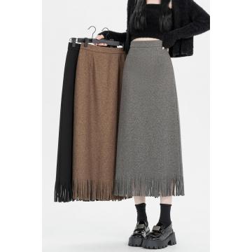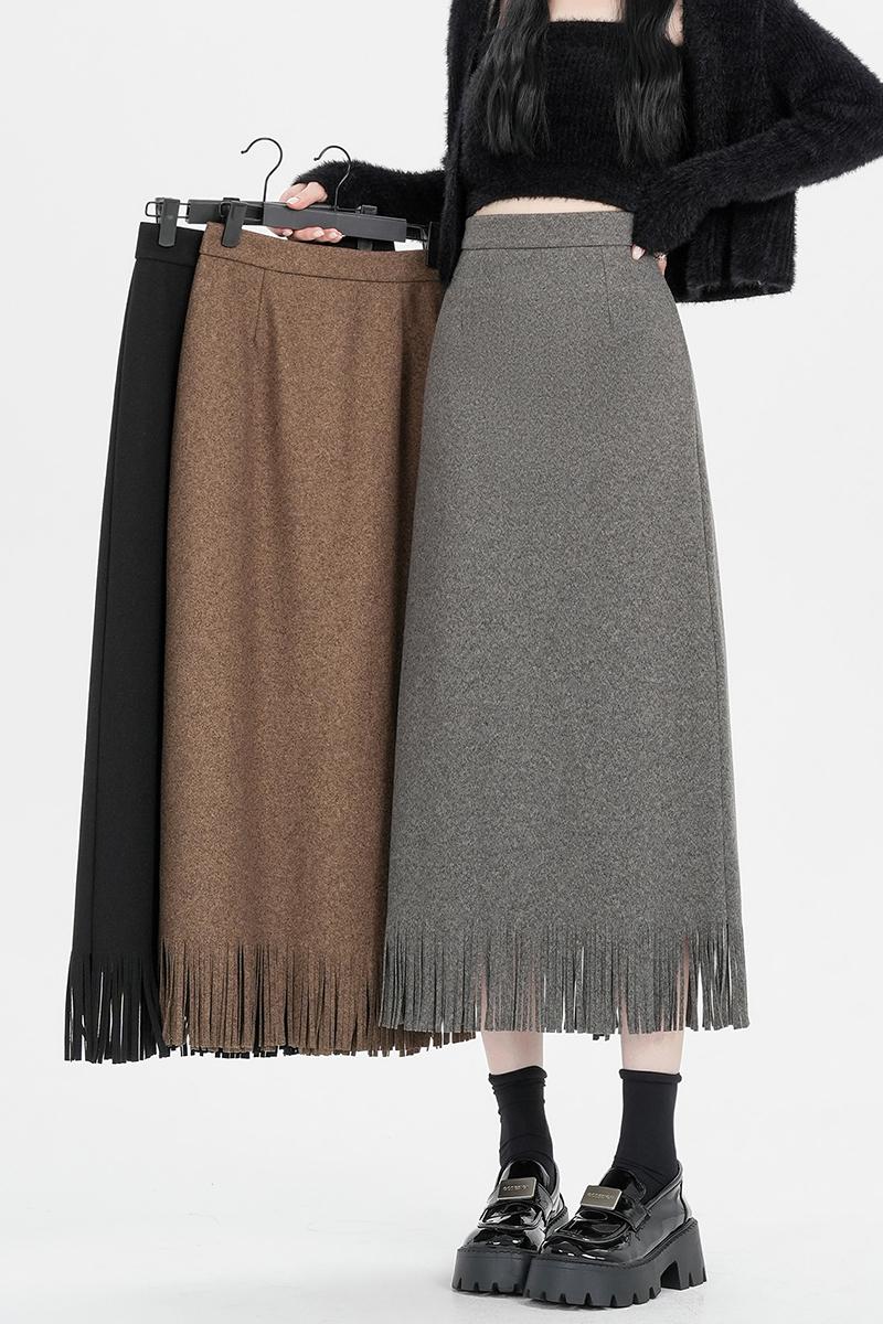 Home > 短裤、半身裙 > FA49662# 厚毛呢料流苏半身裙女冬长款高腰a字裙直筒显瘦一步包臀裙子