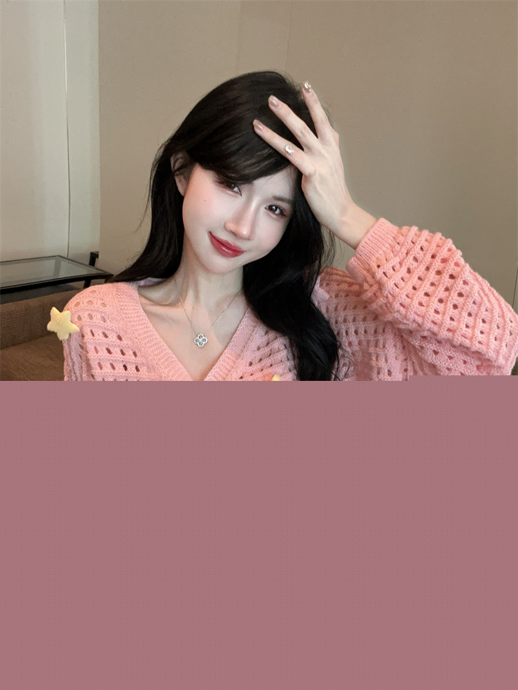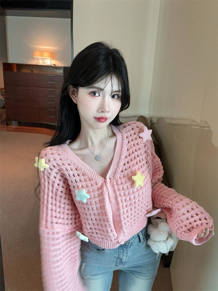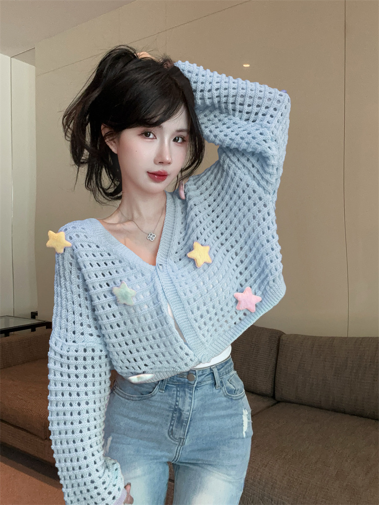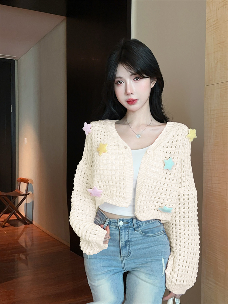 FA49681# 辣妹气质小星星温柔风甜美减龄镂空针织短款百搭外套