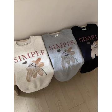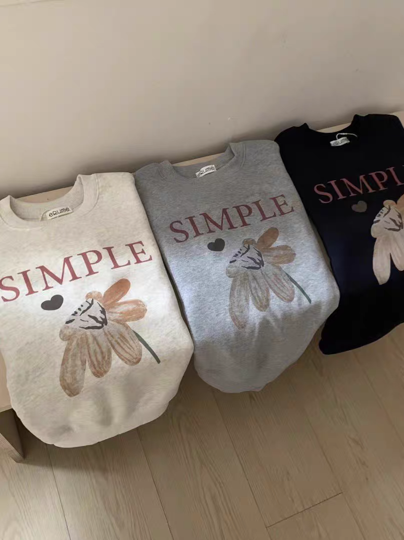 FA49709# 韩系休闲简约花朵印花圆领套头卫衣
