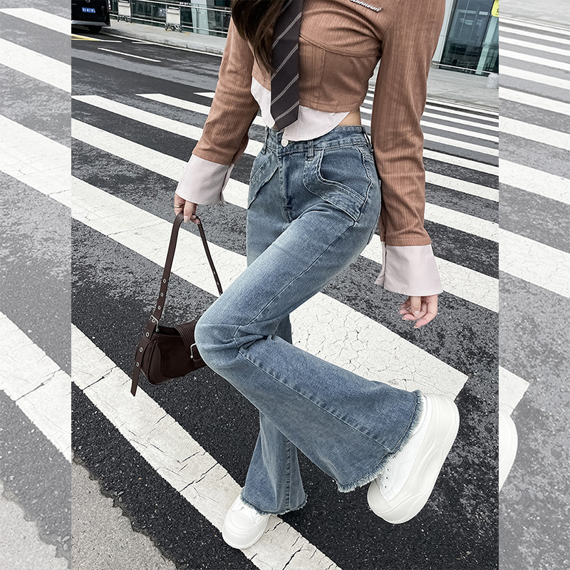 FA49750# -春秋微喇叭阔腿时尚显瘦牛仔裤女大码胖mm低腰垂感拖地裤子 服裝批發女裝批發服飾貨源