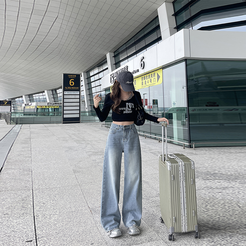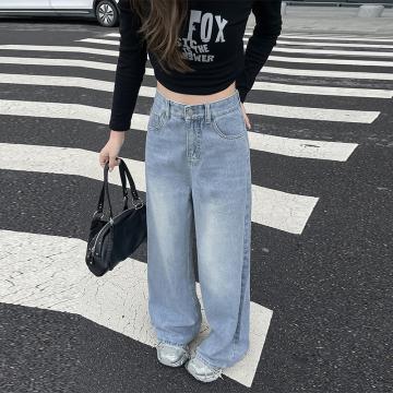 FA49753# -春秋大码梨形阔腿牛仔裤女遮肉胖mm设计感宽松拖地直筒长裤 服裝批發女裝批發服飾貨源