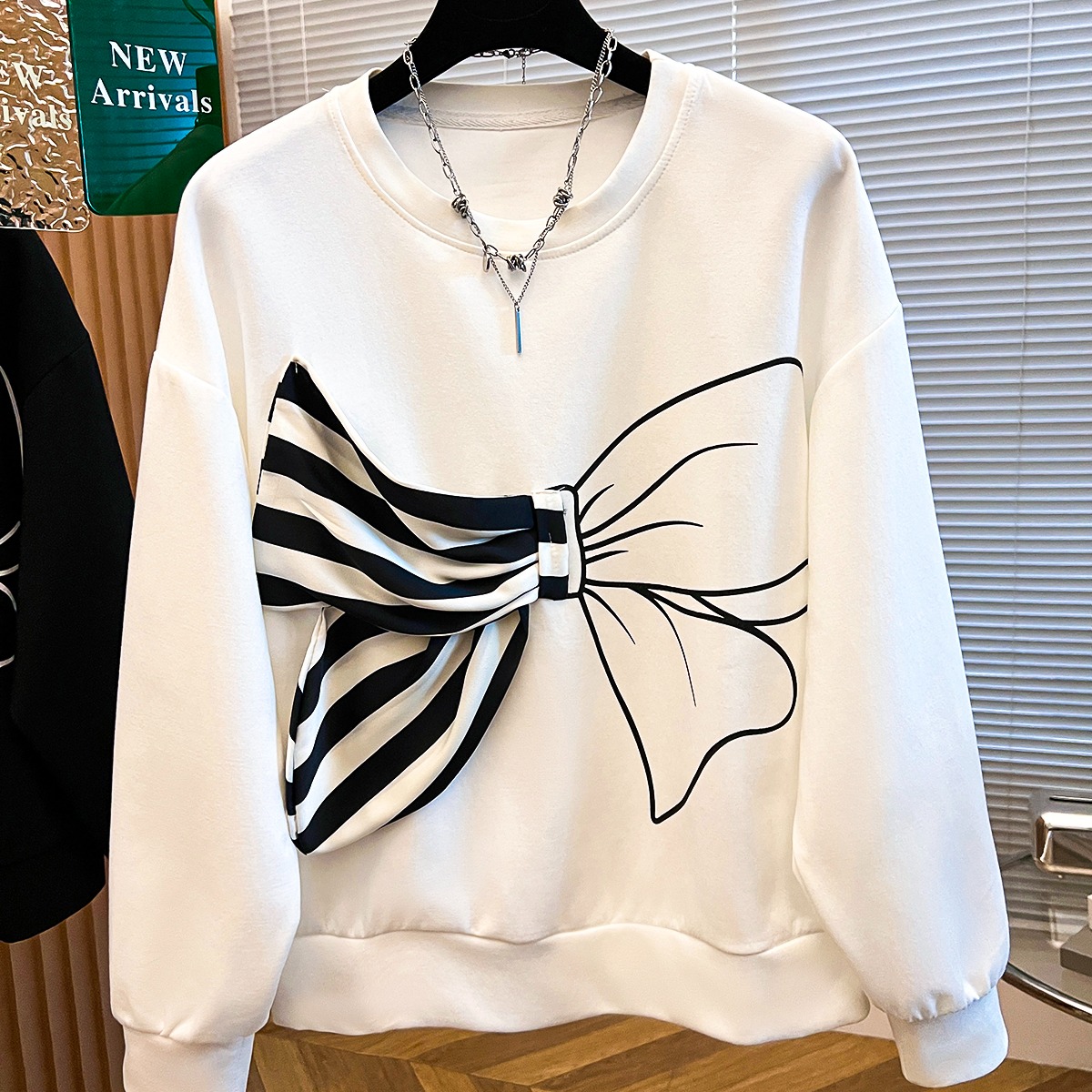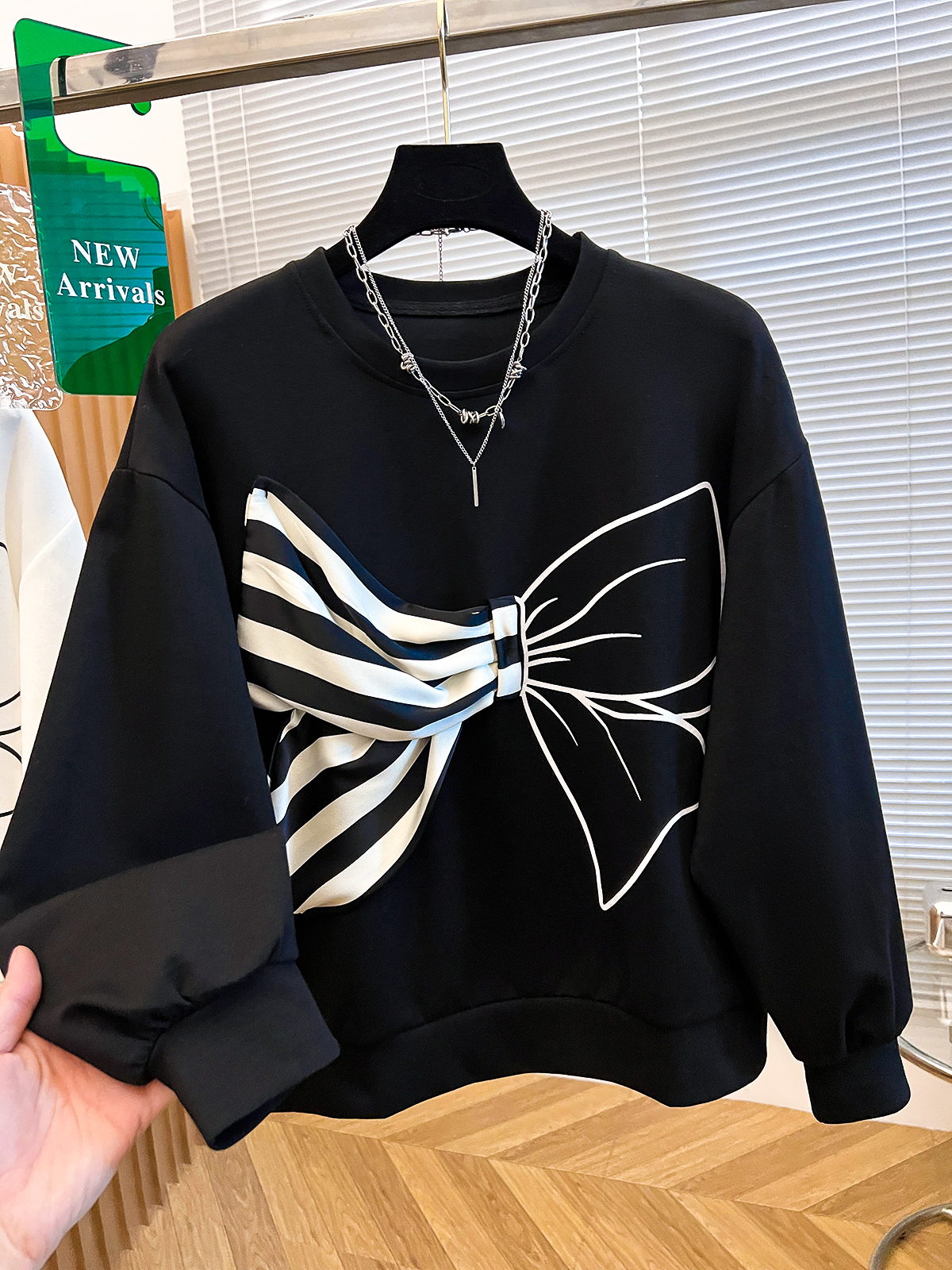 FA49824# 蝴蝶结长袖卫衣女秋季新款大码微胖mm设计感宽松显瘦套头短款上衣 服裝批發女裝批發服飾貨源