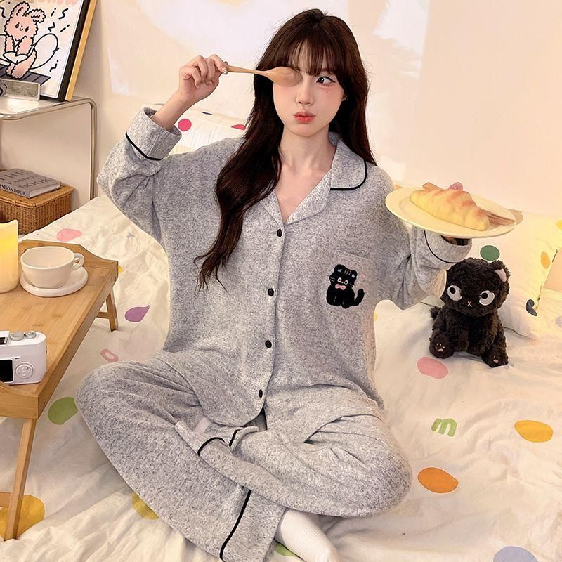 FA50356# 秋季羊绒开衫长袖长裤毛巾绣女士家居服网红直播高品 服裝批發女裝批發服飾貨源