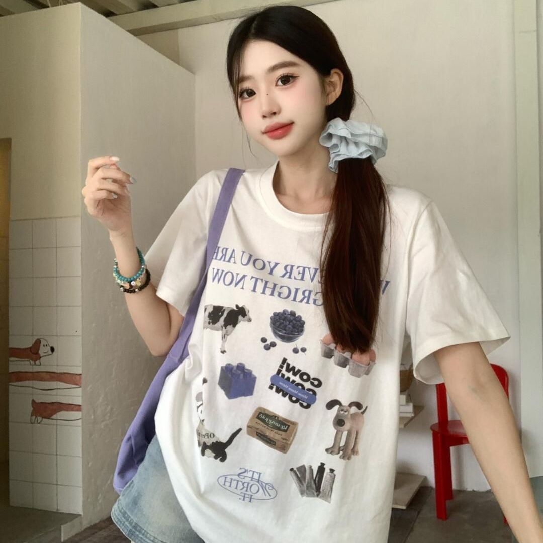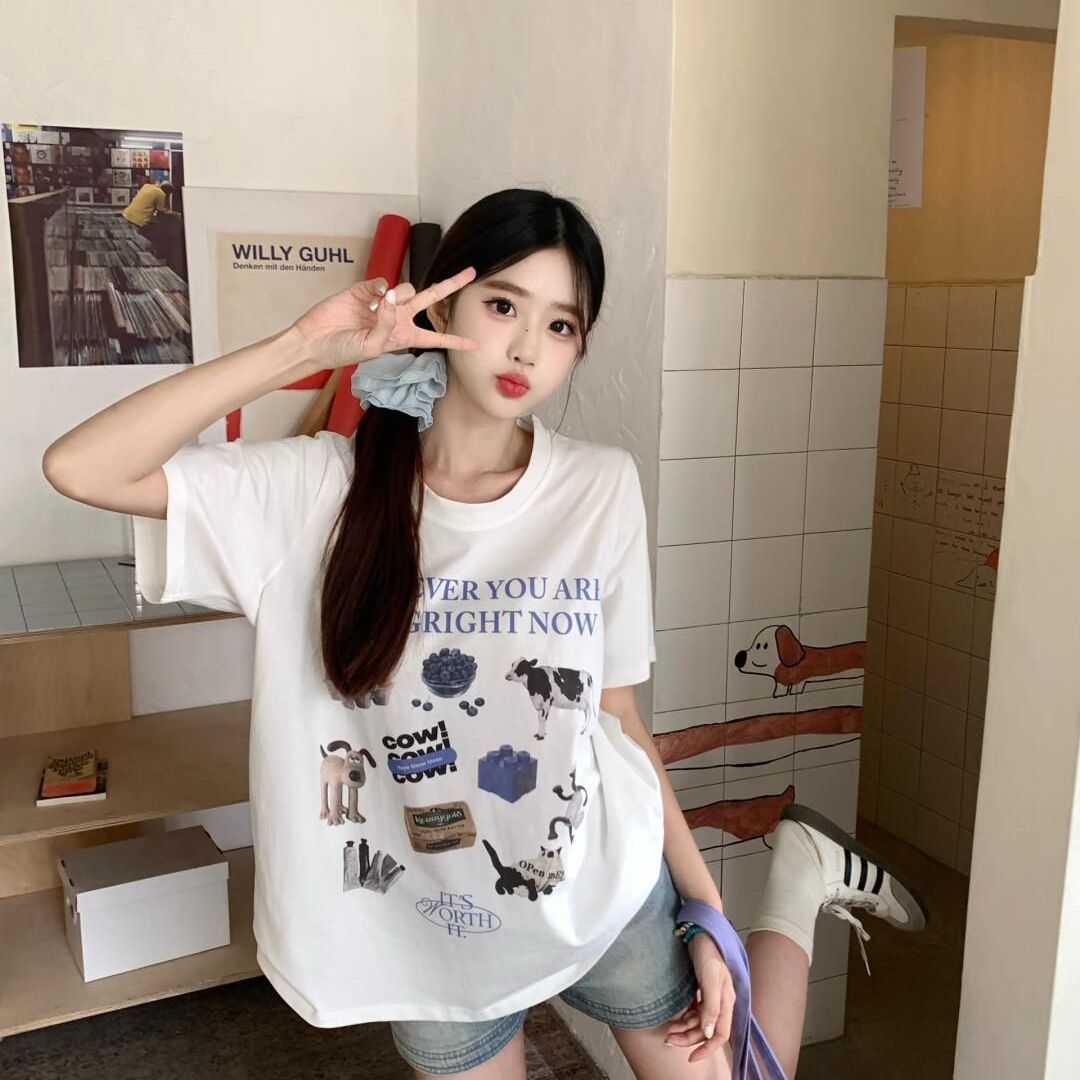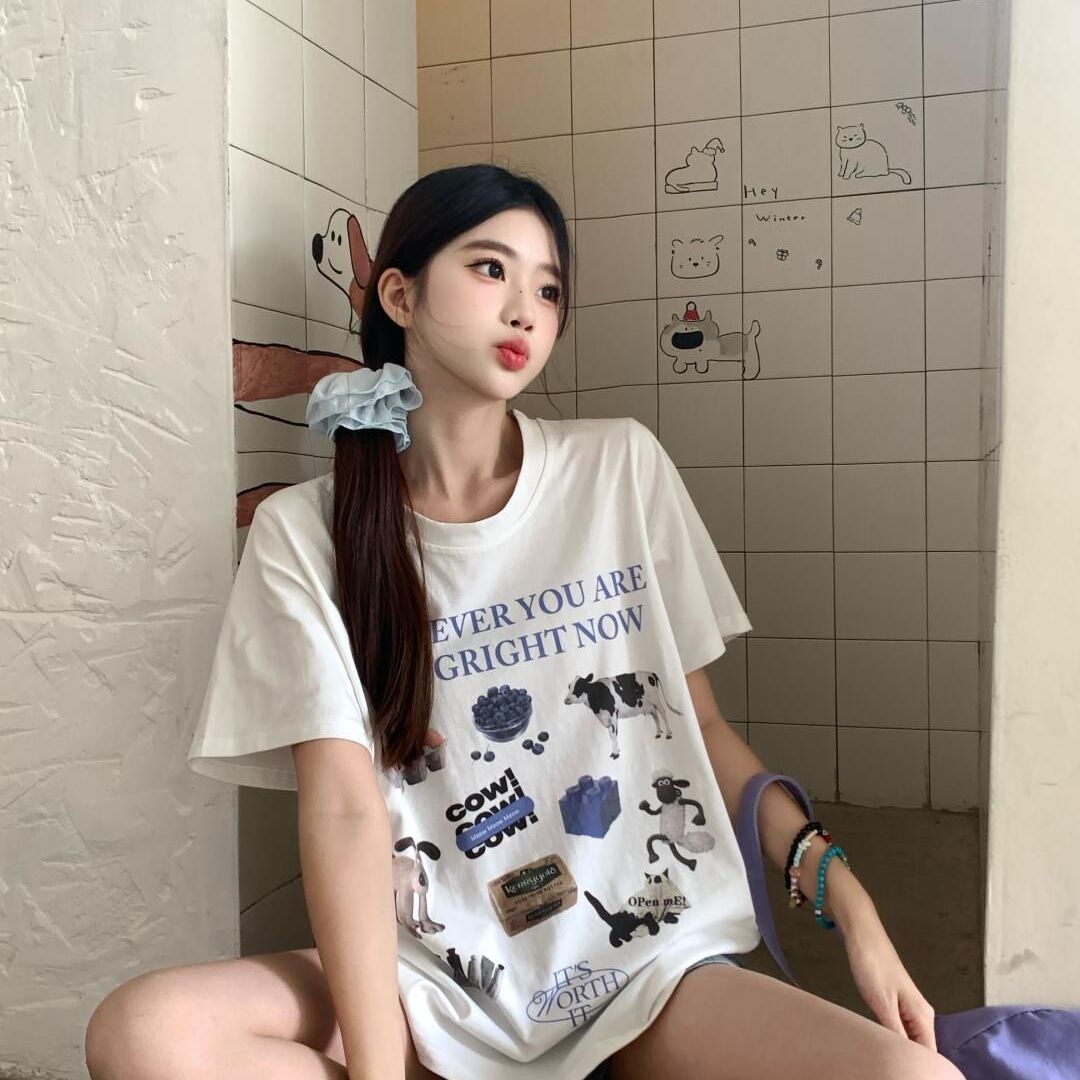 CX13611# 最便宜服饰批发 纯棉短袖t恤女宽松韩版ins潮春夏季新款中长款半袖上衣ins潮