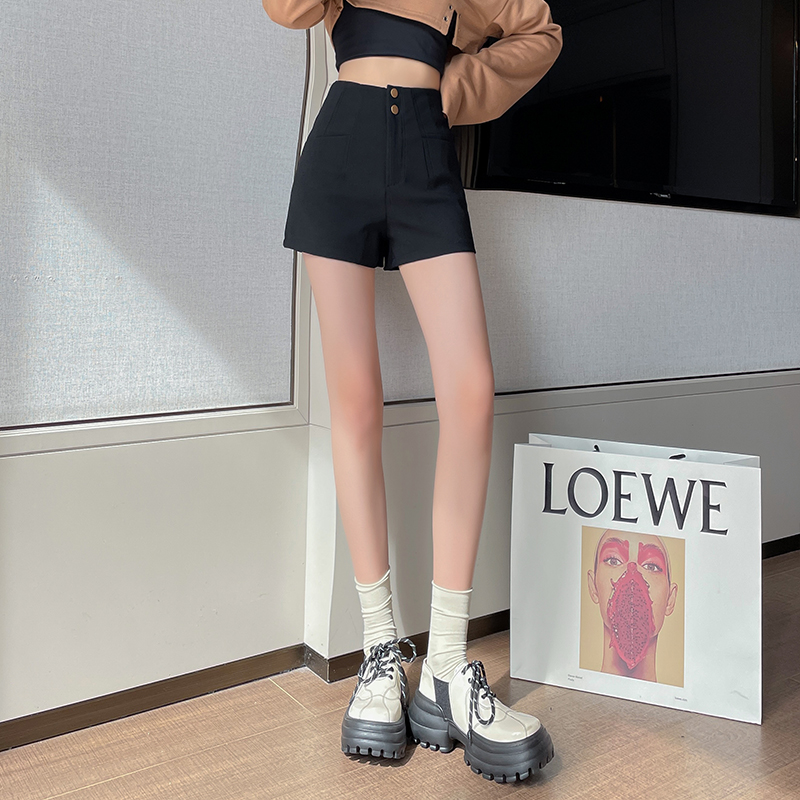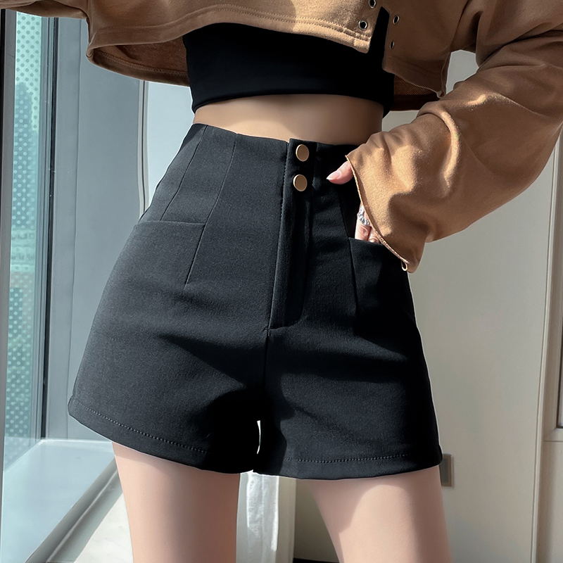 FA50598# 春秋新款口袋阔腿短裤女休闲黑色韩版高腰纯色外穿小个子热裤 服裝批發女裝批發服飾貨源