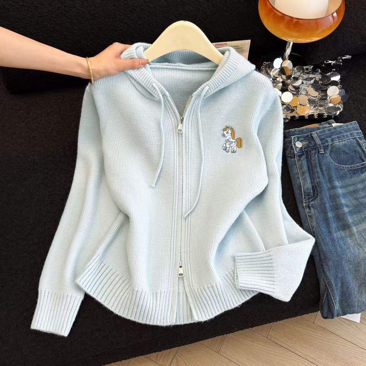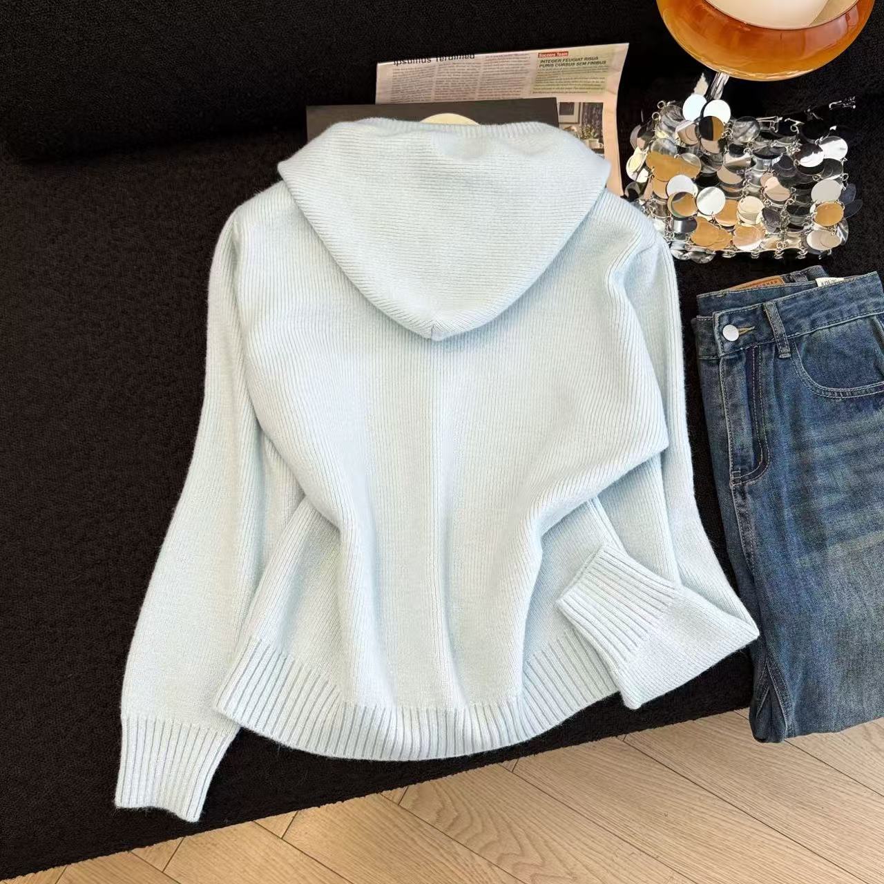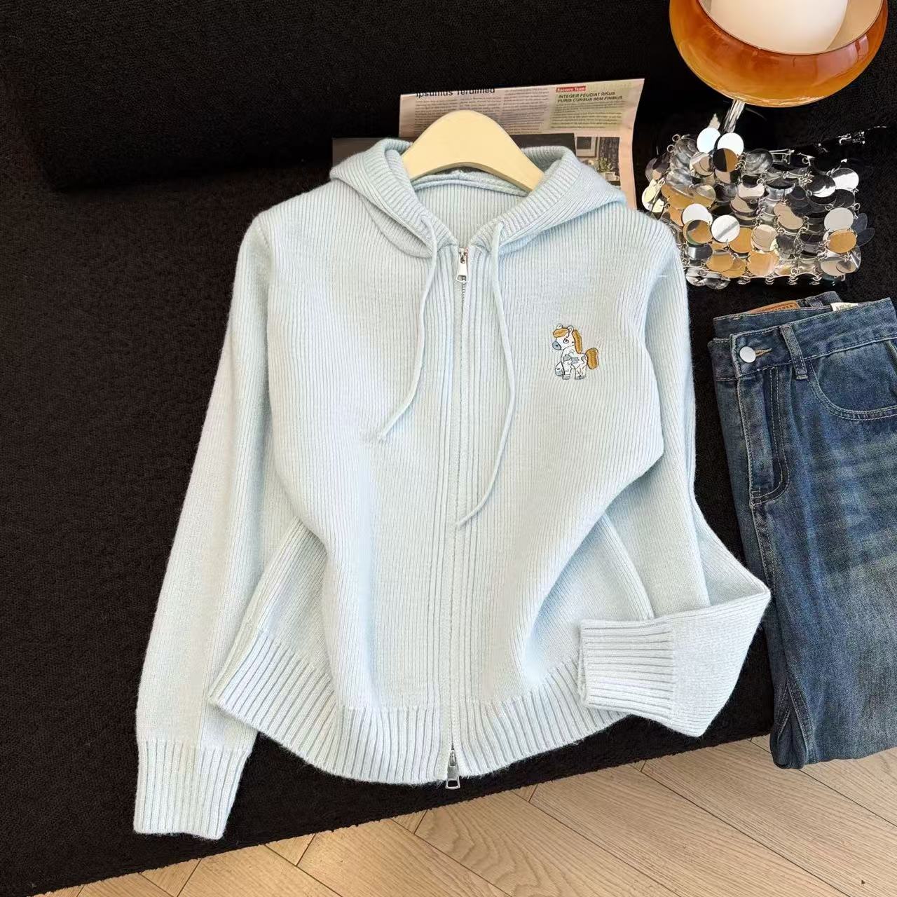 FA52164# 韩系连帽针织毛衣女秋冬加厚保暖宽松版拉链开衫上衣外套女潮 服裝批發女裝批發服飾貨源